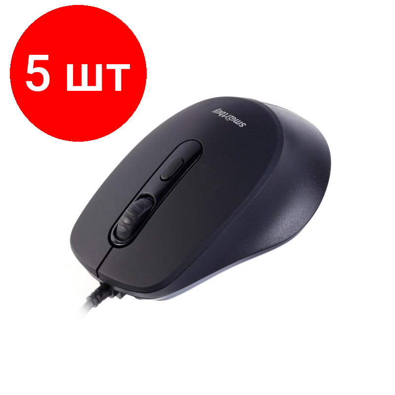 Мышки Комплект 5 штук, Мышь компьютерная Smartbuy ONE 265-K, проводная, черная (SBM-265-K) / 40