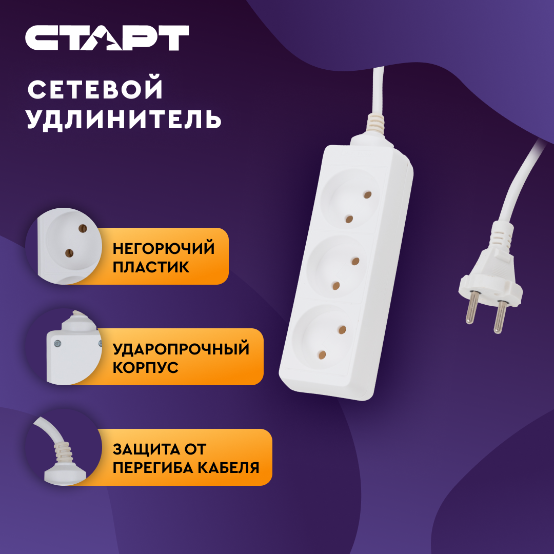 Старт удлинитель сетевой S 3x3-Z 3 розетки 3 метра 1 038 ₽ Подробнее