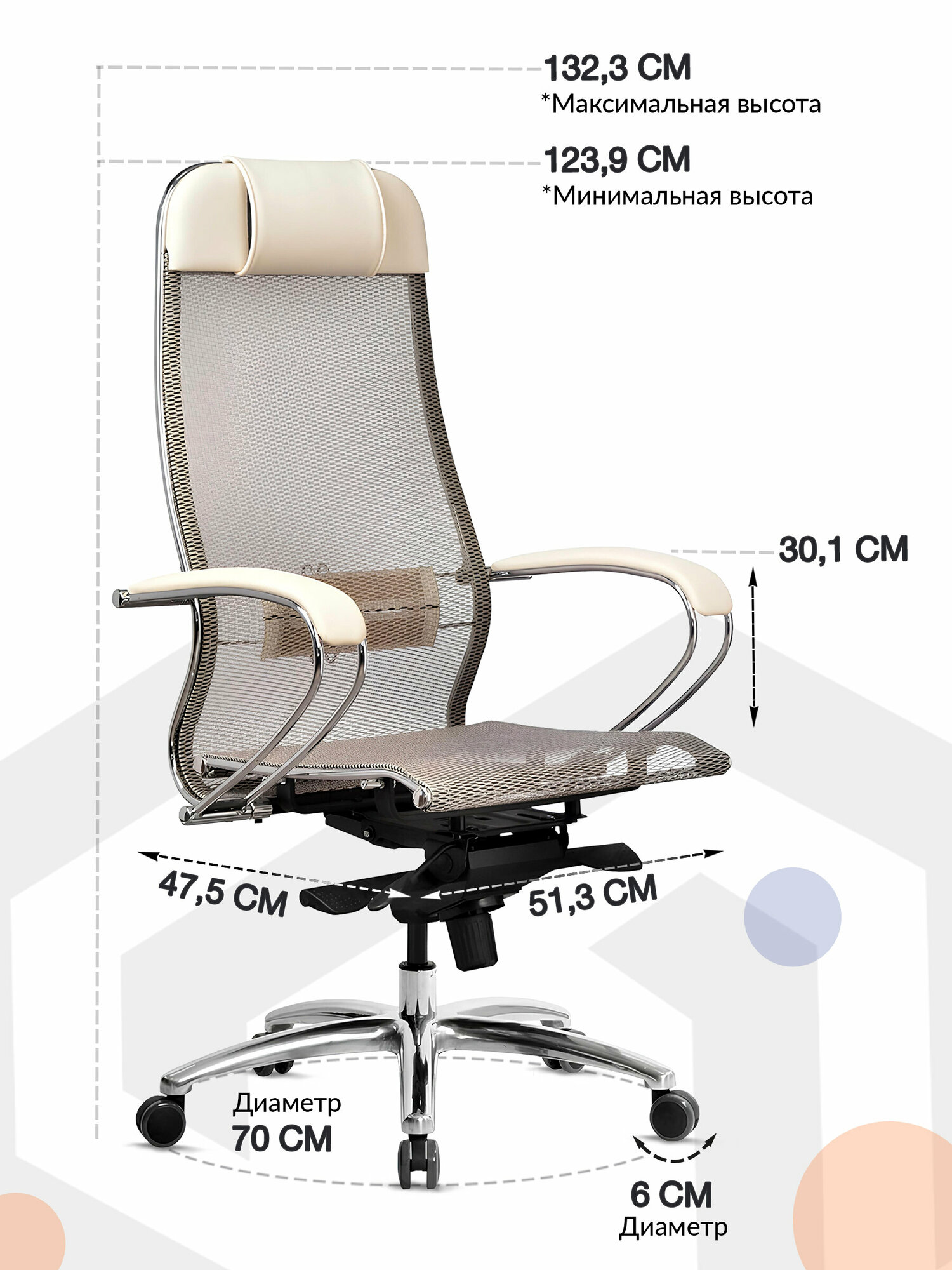 Кресло METTA компьютерное молочное, сетка, экокожа, крестовина металл - Кресло руководителя, с подголовником 33 590 ₽ Подробнее