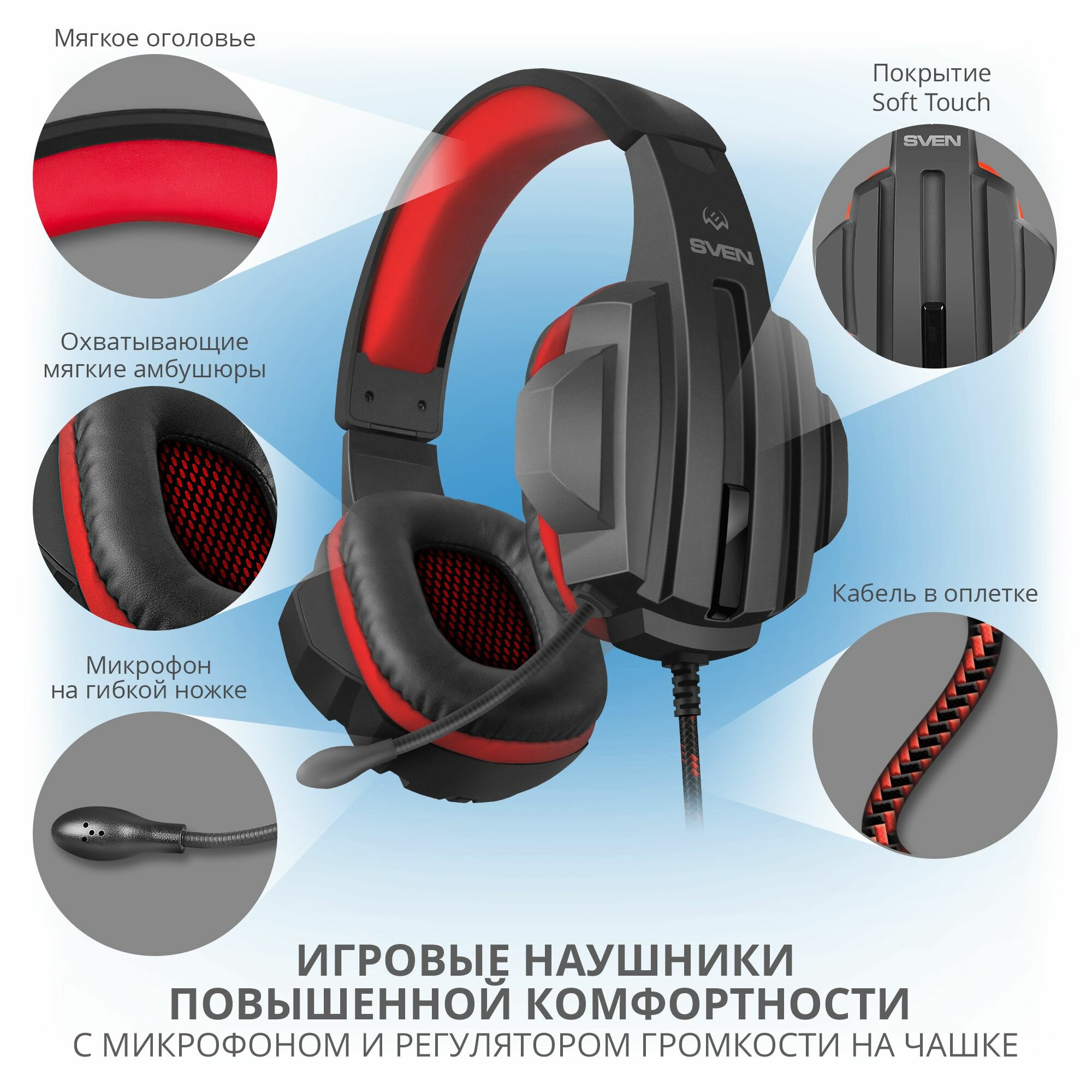Наушники с микрофоном Sven AP-G300MV игровые полноразмерная компьютерная гарнитура чёрно-красные 1 896 ₽ Подробнее