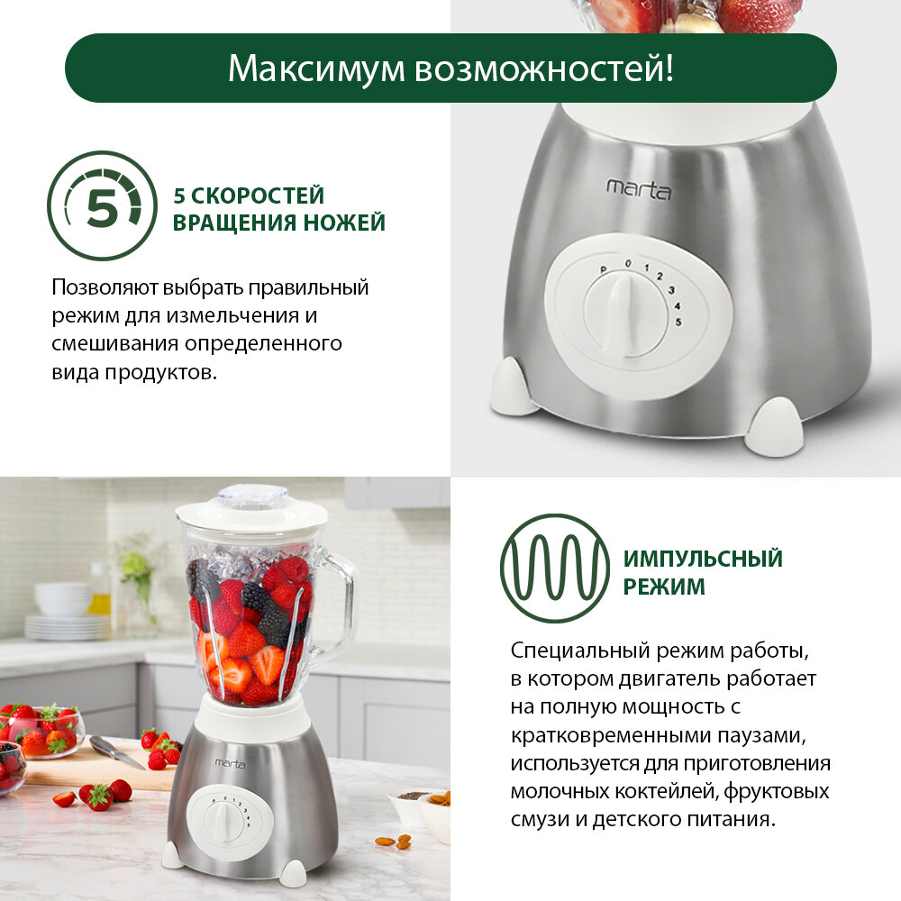 MARTA MT-1591 белый жемчуг/сталь блендер стационарный 2 847 ₽ Подробнее