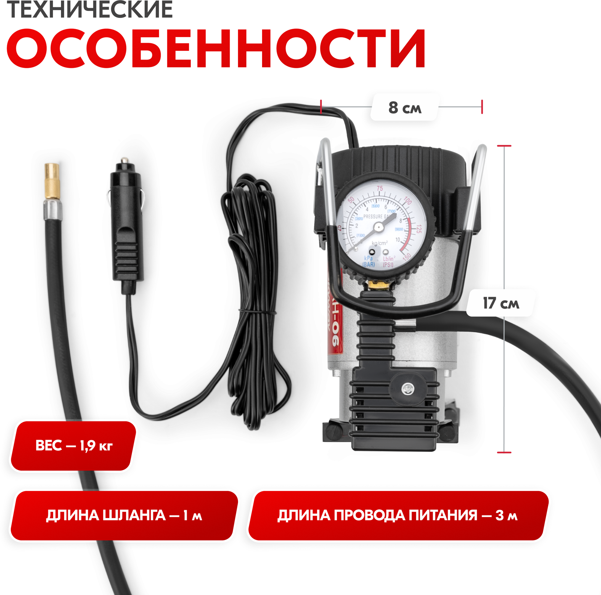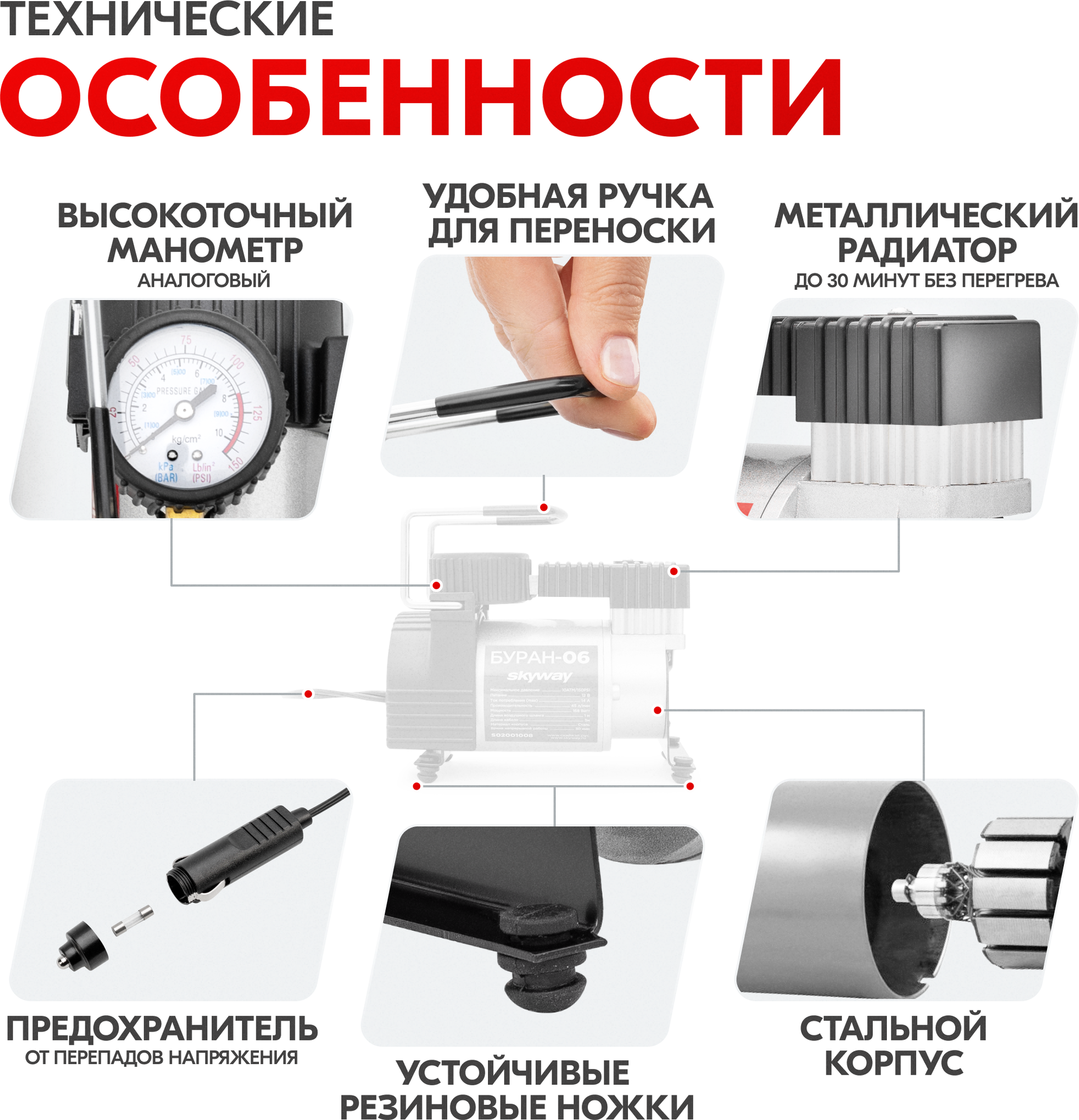 Компрессор автомобильный 45 л/мин,10 атм "SKYWAY" БУРАН-06 в прикуриватель Skyway S02001008
