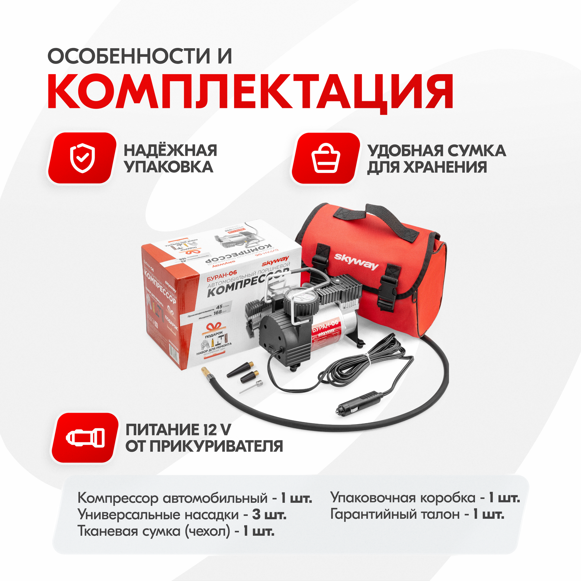 Насосы и компрессоры Компрессор автомобильный Skyway Буран-06 S02001008 в сумке