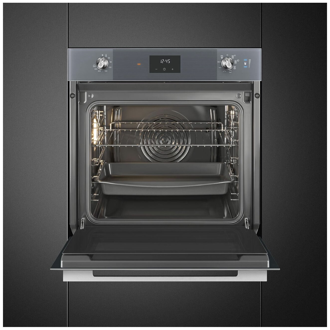 Встраиваемая электрическая духовка SMEG/ Linea, Многофункциональный духовой шкаф с пароувлажнением, 60 см, 6 функций, серебристое стекло Stopsol