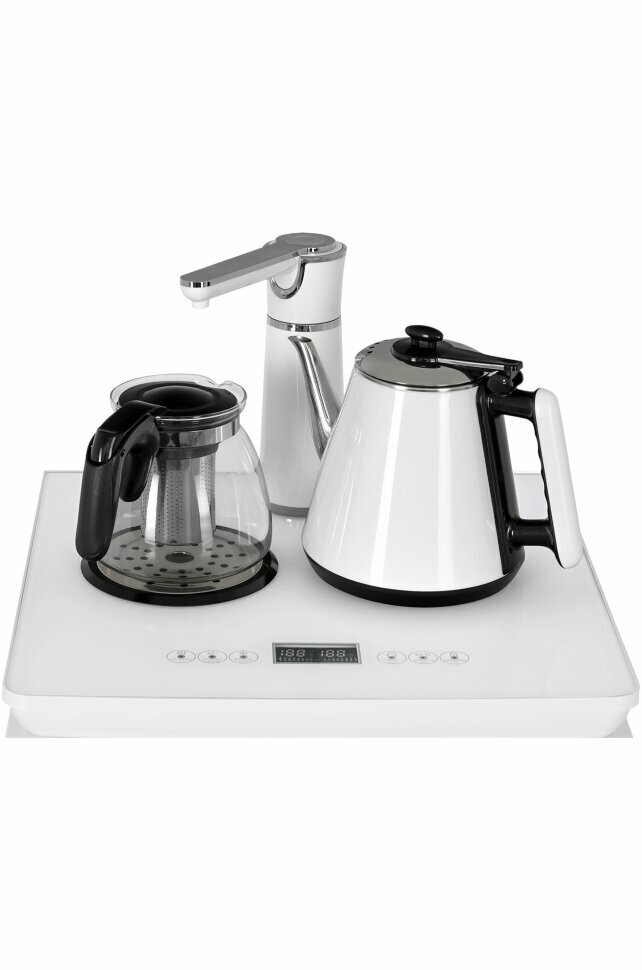 Кулер для воды HIBERG F91 FGW напольный, нижняя загрузка, электрочайник, белое стекло
