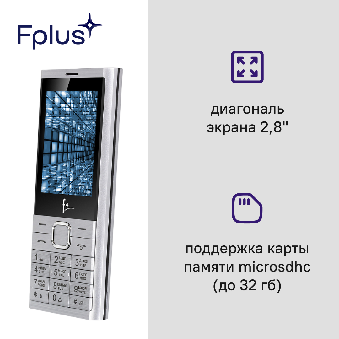 Мобильные телефоны Мобильный телефон Fplus B280 серебристый, 2G, 2 SIM (Standard/Mini), 2500 мАч
