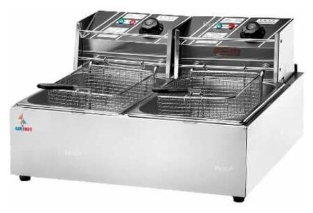 Фритюрница Фритюрница электрическая AIRHOT EEF-6+6; 2,5+2,5 кВт, 2 ванны 6+6 л, в комплекте 2 корзины без крышки, нержавеющая сталь