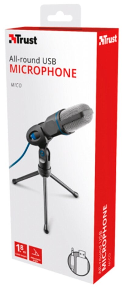 Микрофон с двумя вариантами подключения и подставкой-треногой Trust Mico, черный