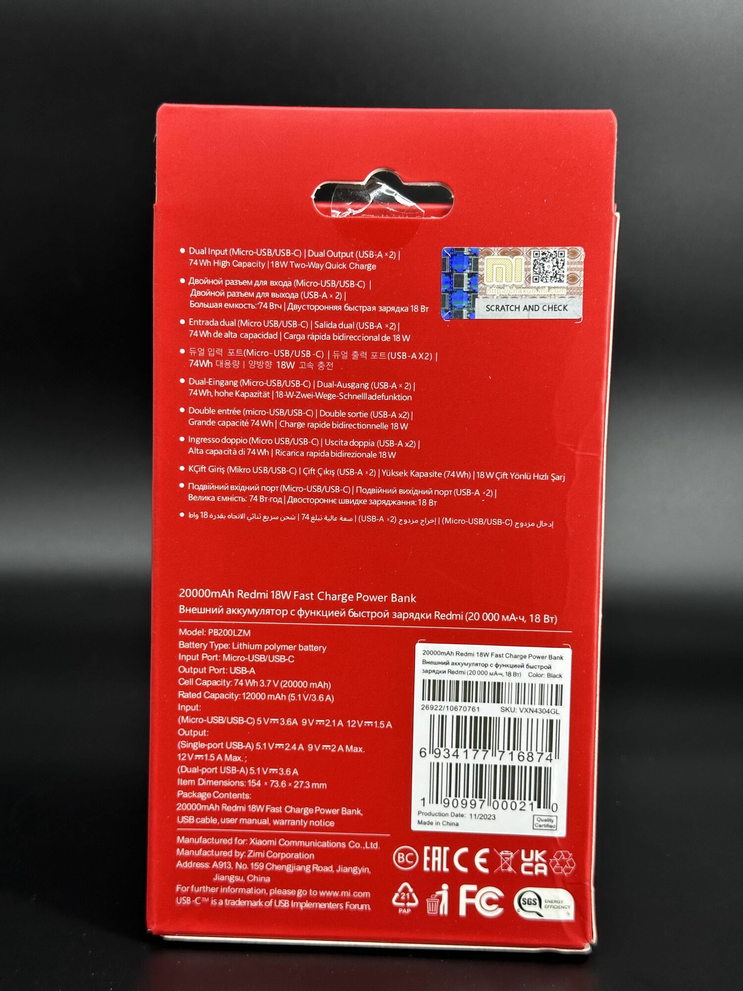 Powerbank Повербанк Redmi 18W Fast Charge 20000mAh