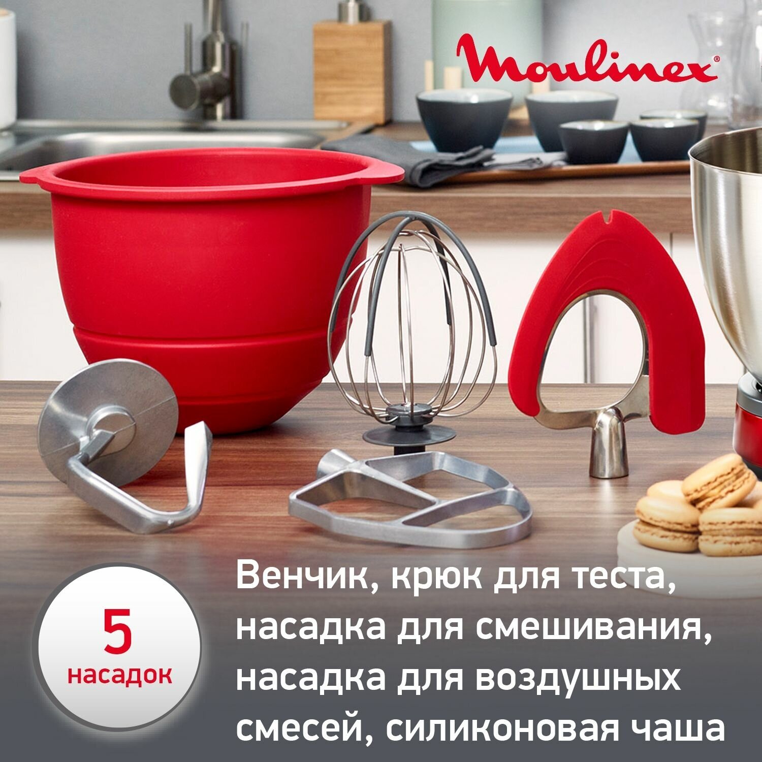 Кухонная машина Moulinex Masterchef Gourmet QA530G10, красный, 1100 Вт, 4,6 л, импульсный режим