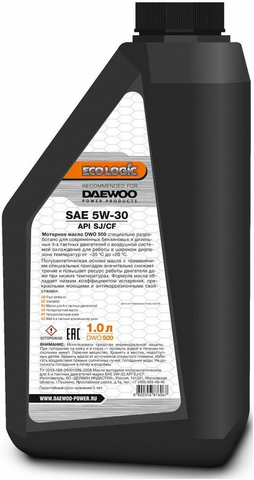 Масло 4-тактное DAEWOO Eco Logic DWO 500 (SAE 5W-30, 1л) 1 290 ₽ Подробнее