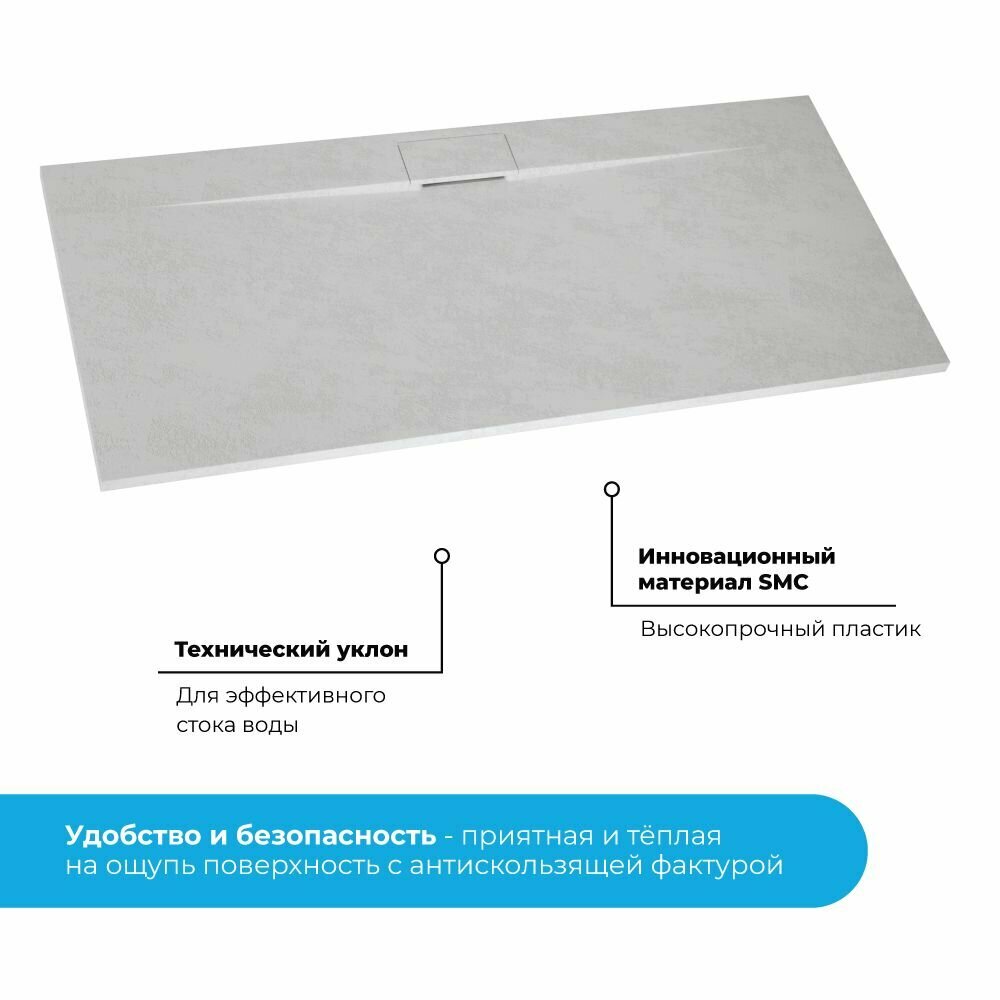 Душевой поддон из искусственного камня RGW STT ST-0137G 70x130x2,5 Серый