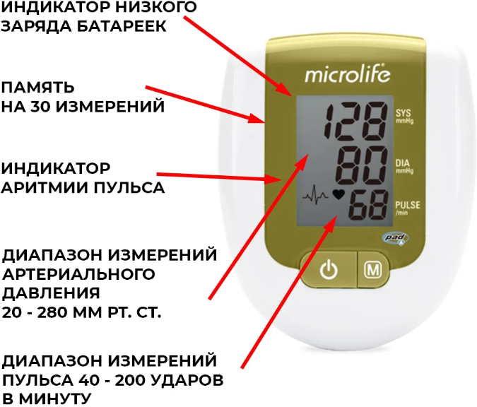 Прибор для измерения артериального давления и частоты сердечного пульса серии BP тонометр 3АG1 Microlife