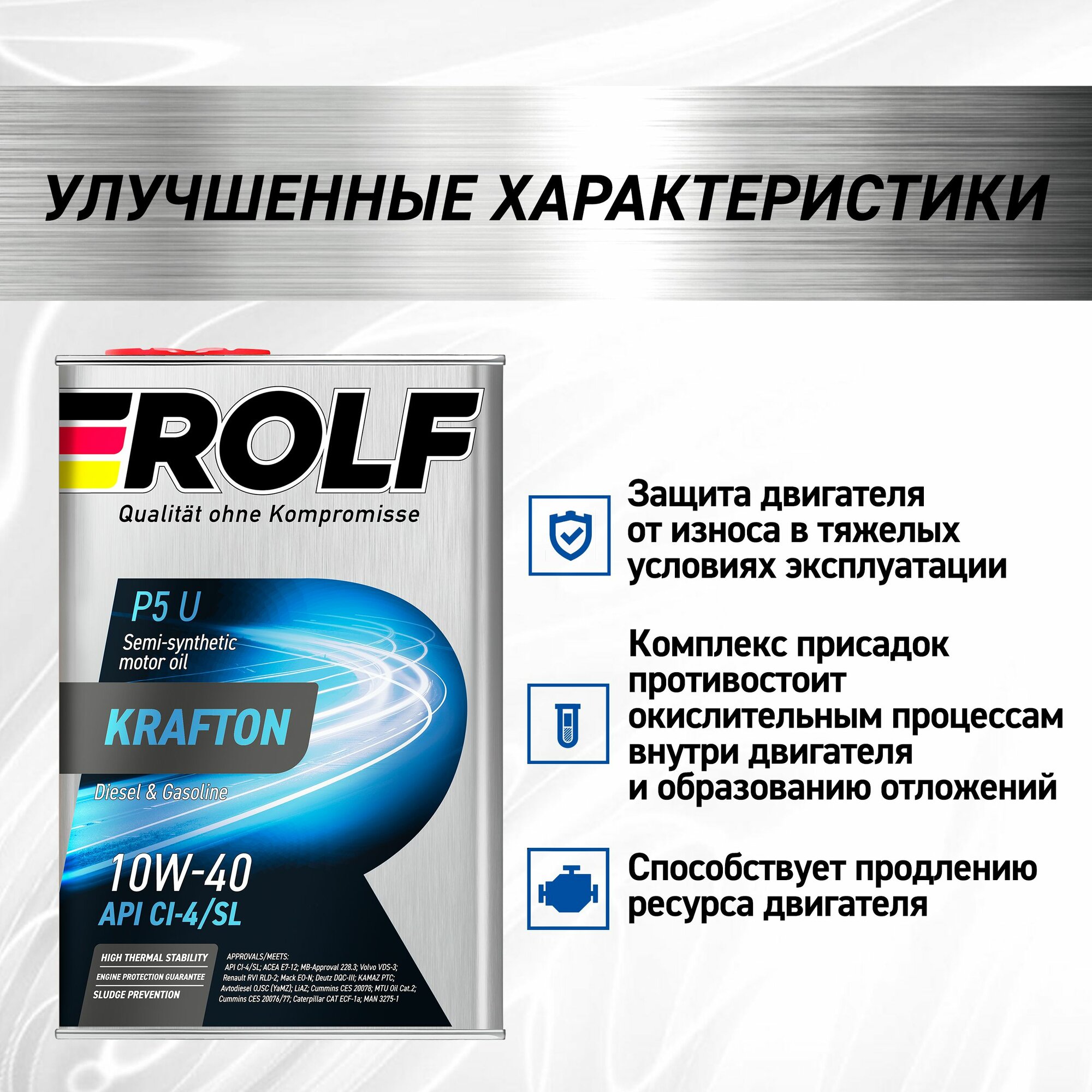Моторное масло ROLF KRAFTON P5 U 10W-40 CI-4/SL полусинтетическое 4 л