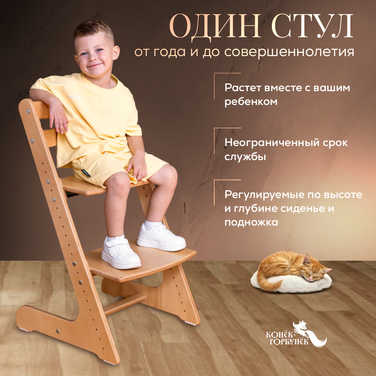 Детский растущий регулируемый стул «Конек Горбунек» Комфорт, цвет «Тик»
