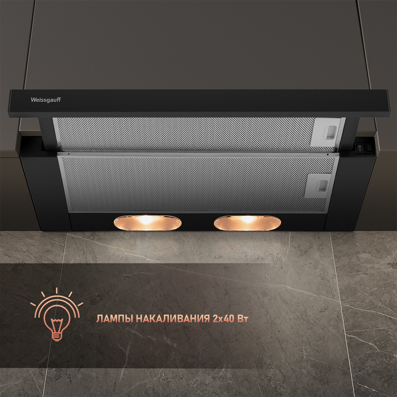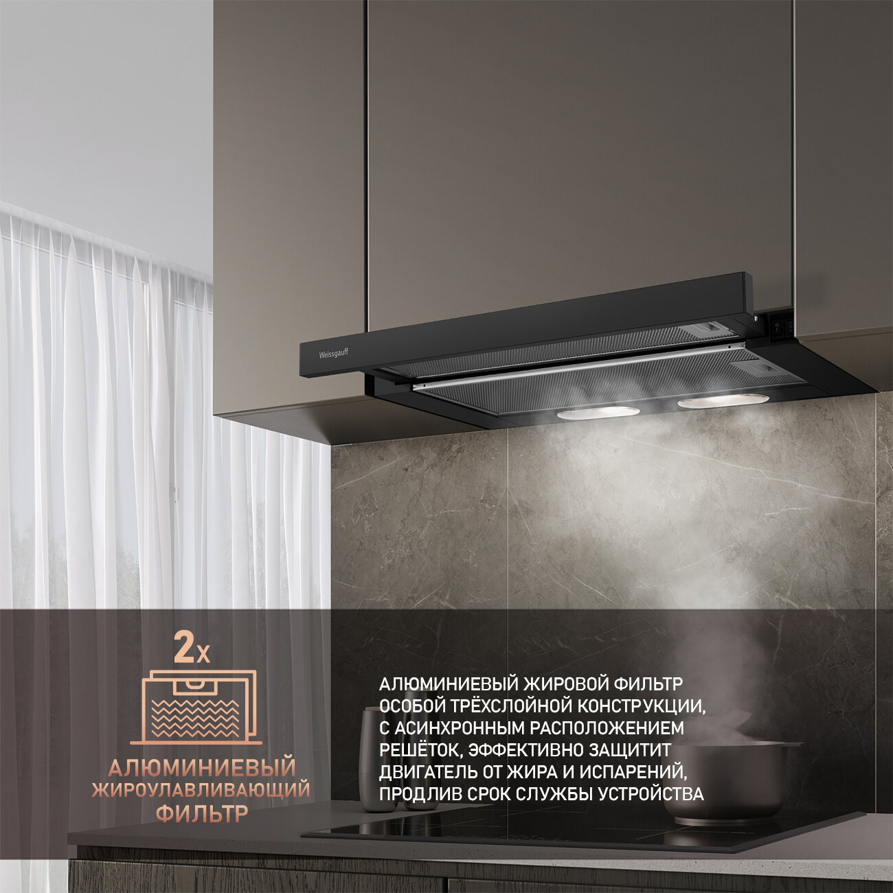 Кухонная встраиваемая вытяжка Weissgauff TEL 600 EB, встраиваемая, 60 см, 3 года гарантии