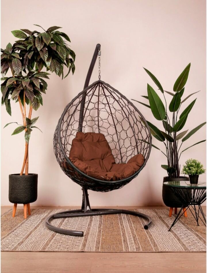 Подвесное кресло капля ротанг черное(без стойки), коричневая подушка