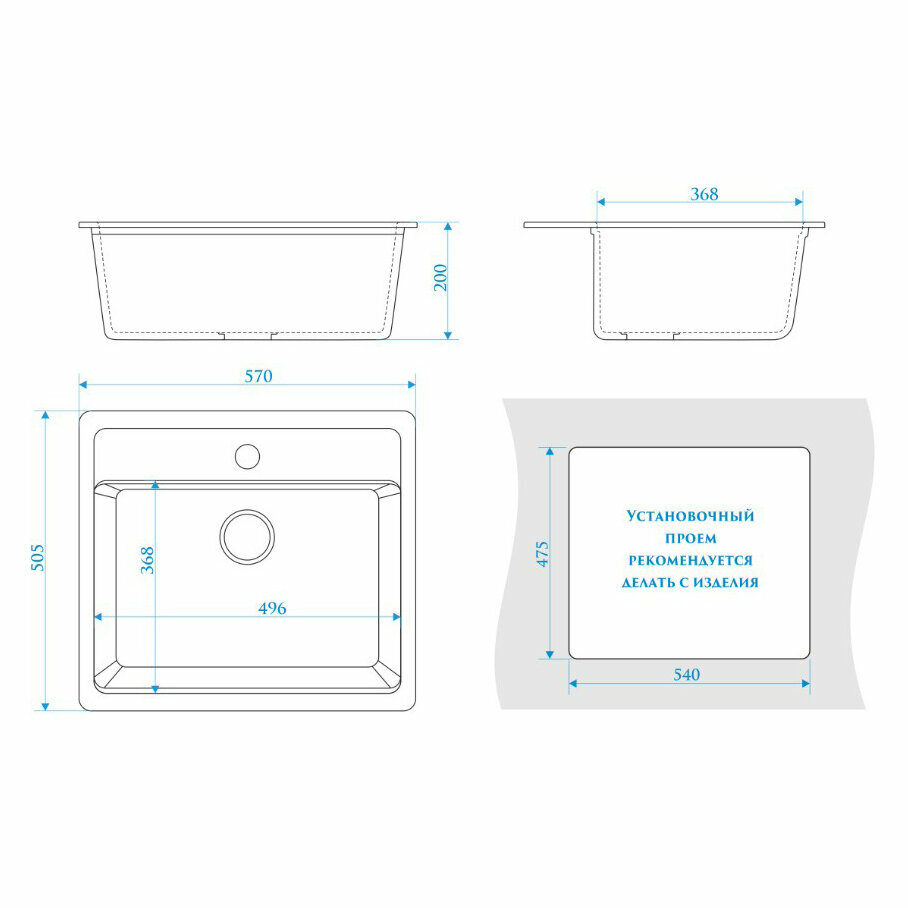 | Размеры врезного отверстия (под столешницу) | 500x390 мм |