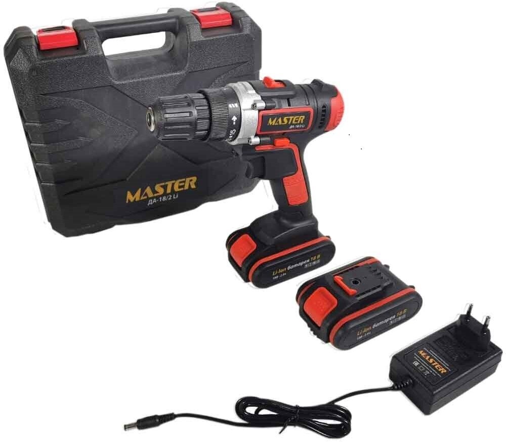 Дрель шуруповёрт аккумуляторная MASTER ДА-18/2 Li (18В, 2акк*2.0Ач, БЗП-10мм, 0-400 0-1400об м, кейс)