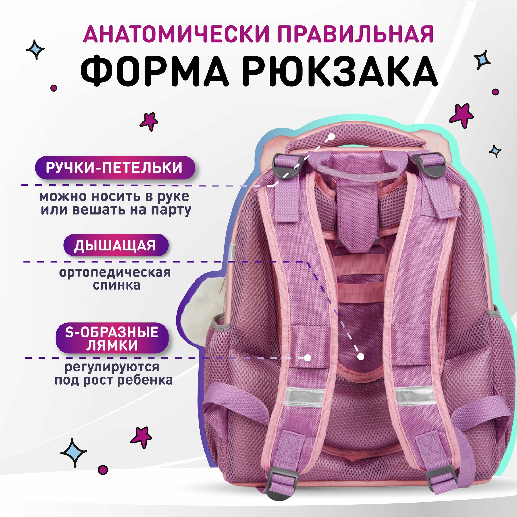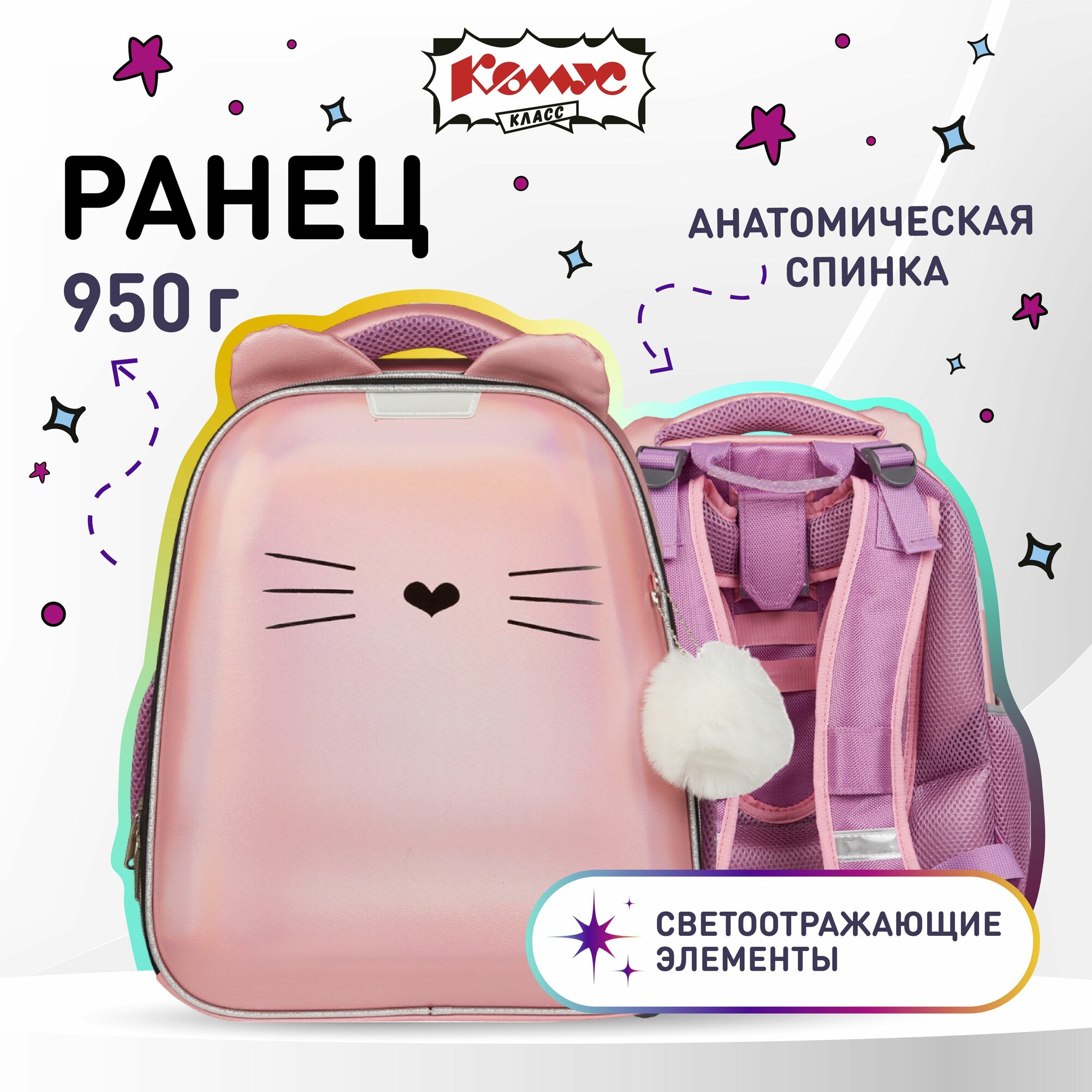 Ранец школьный Комус Kitty, портфель анатомический для девочки, 2 отделения, 4 кармана 7 651 ₽ Подробнее