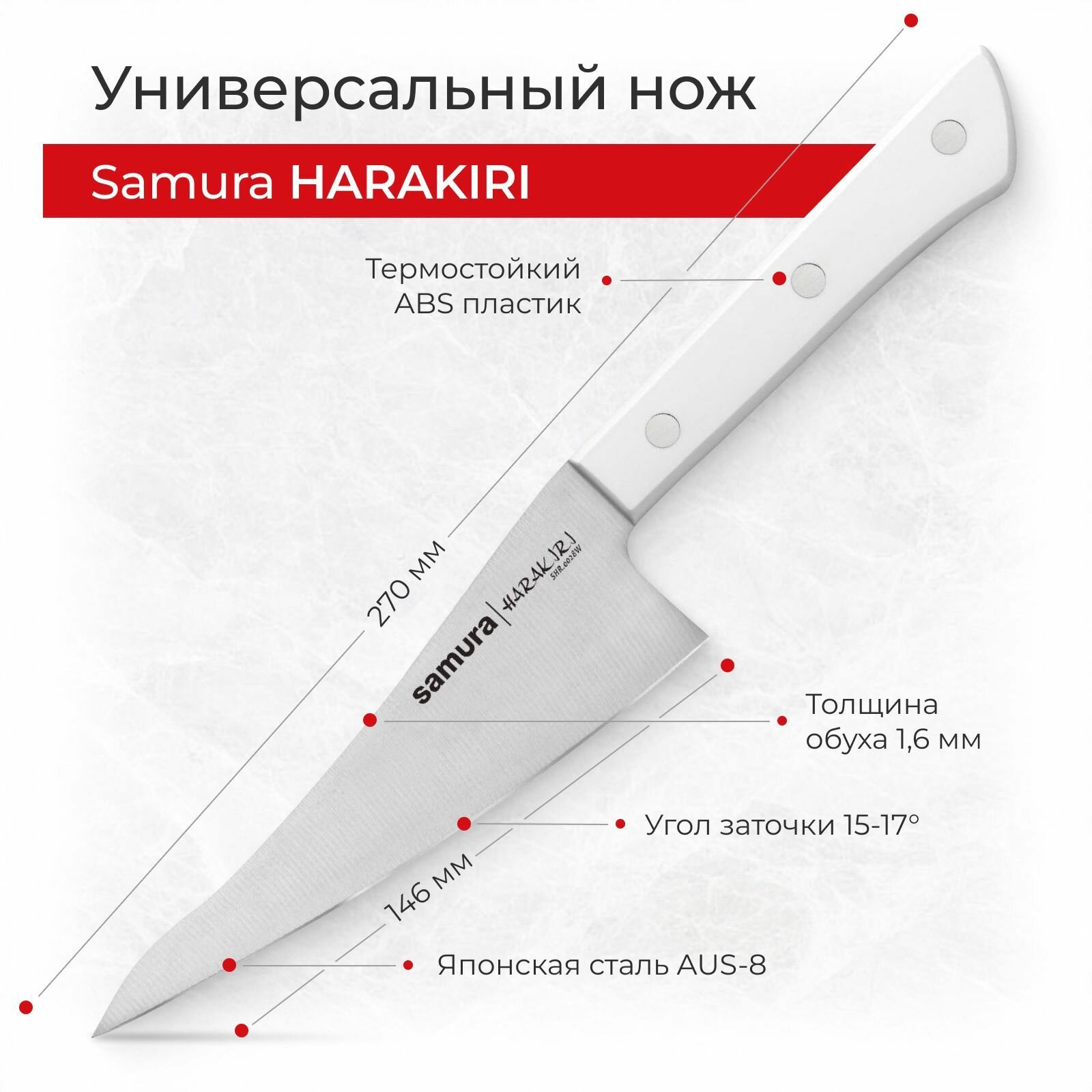 SAMURA Нож кухонный Samura HARAKIRI, универсальный, лезвие 15 см, белая рукоять 3 363 ₽ Подробнее