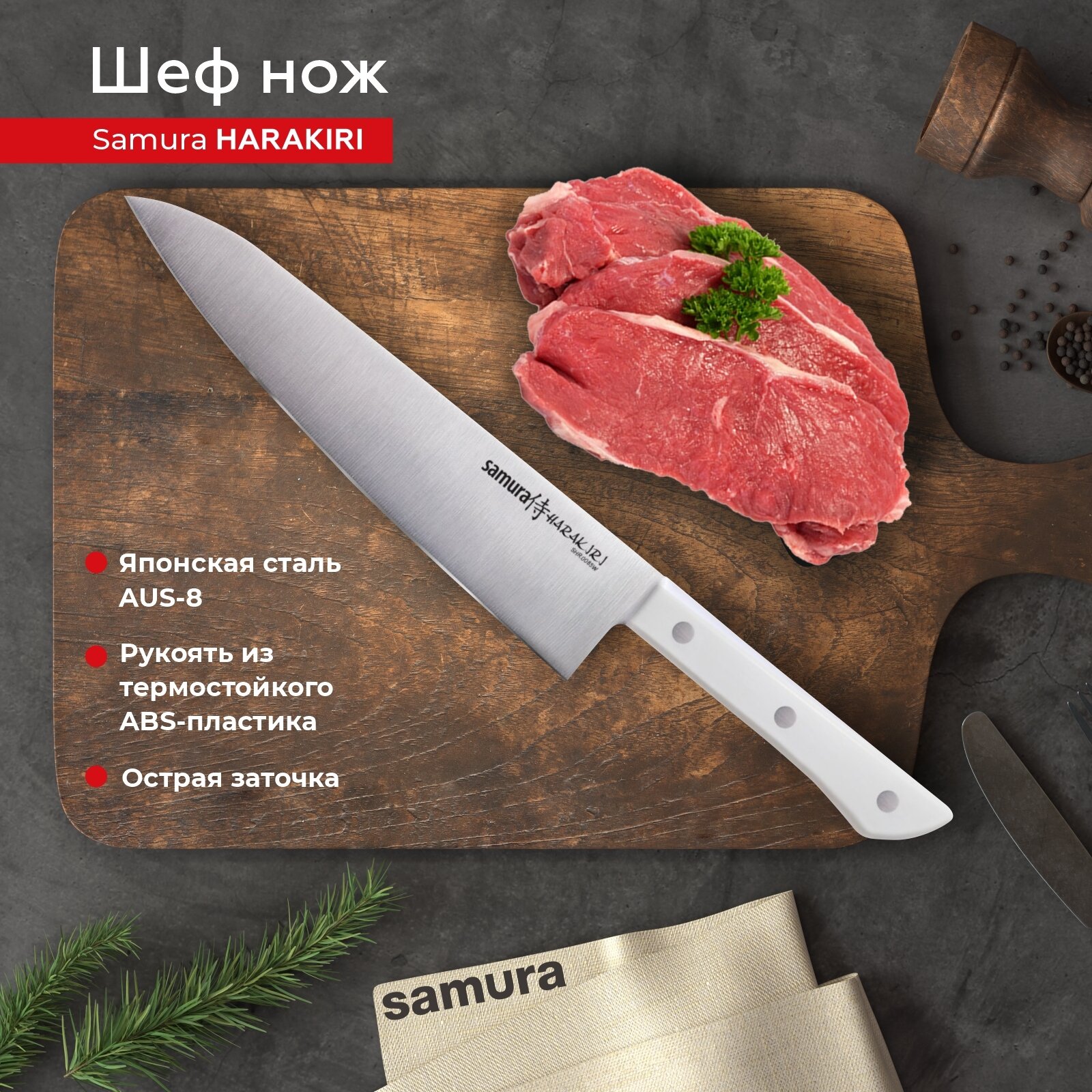 Кухонный нож Нож кухонный поварской Samura Harakiri Шеф для разделки нарезки профессиональный SHR-0085W