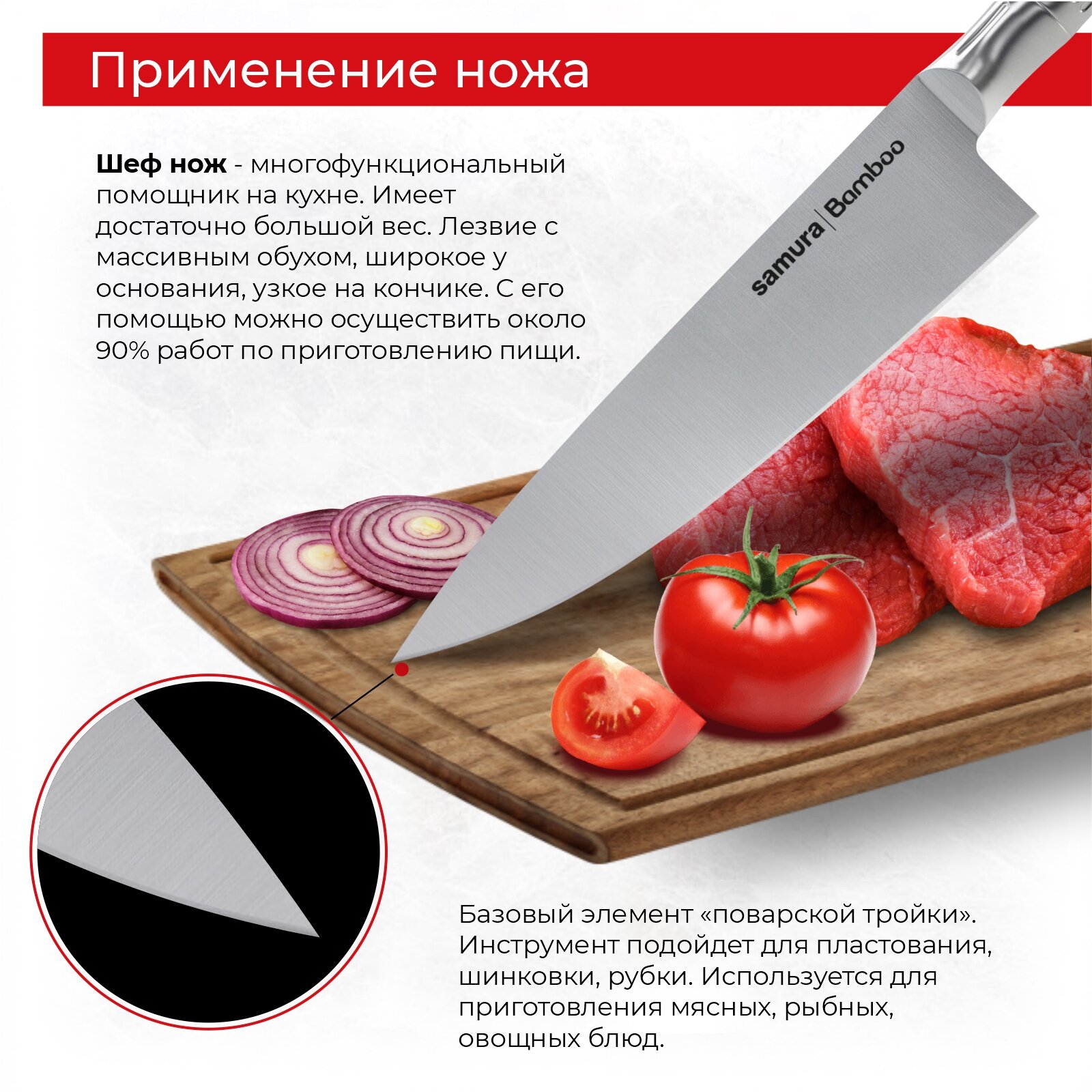 SBA-0220,пукч набор из 3-Х кухонных ножей SAMURA BAMBOO овощного, универсального, Шефа и подставки универсальной квадратной черной