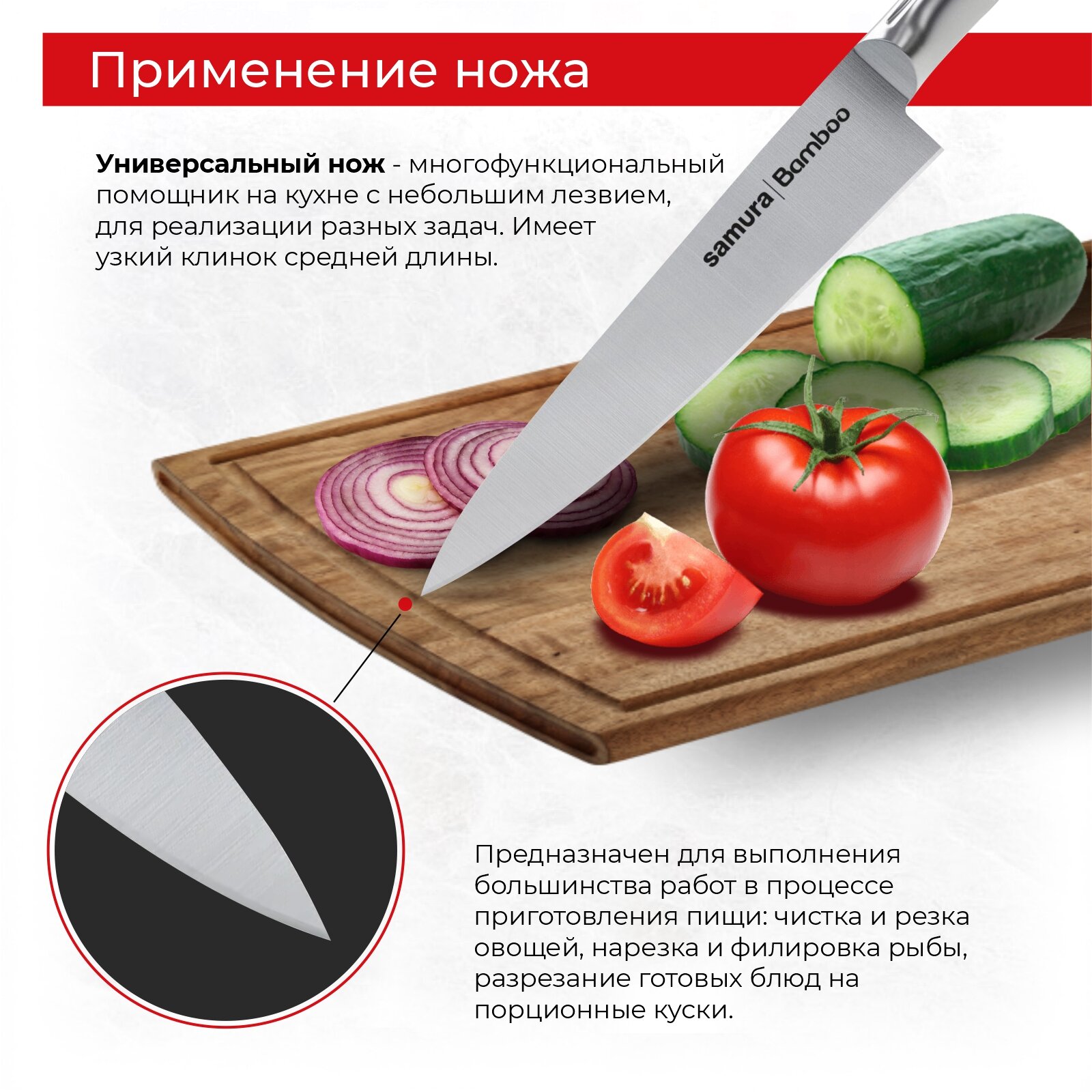 Кухонные ножи Набор кухонных ножей с подставкой Samura Bamboo / овощной нож / универсальный нож / слайсер / шеф нож / SBA-05