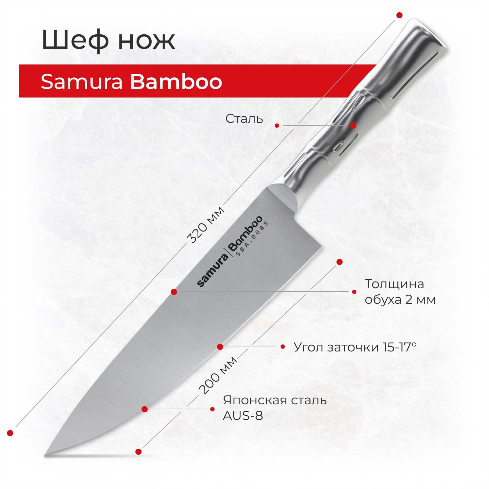 SBA-0220/K Набор из 3 ножей "Samura Bamboo" (10, 23, 85), AUS-8