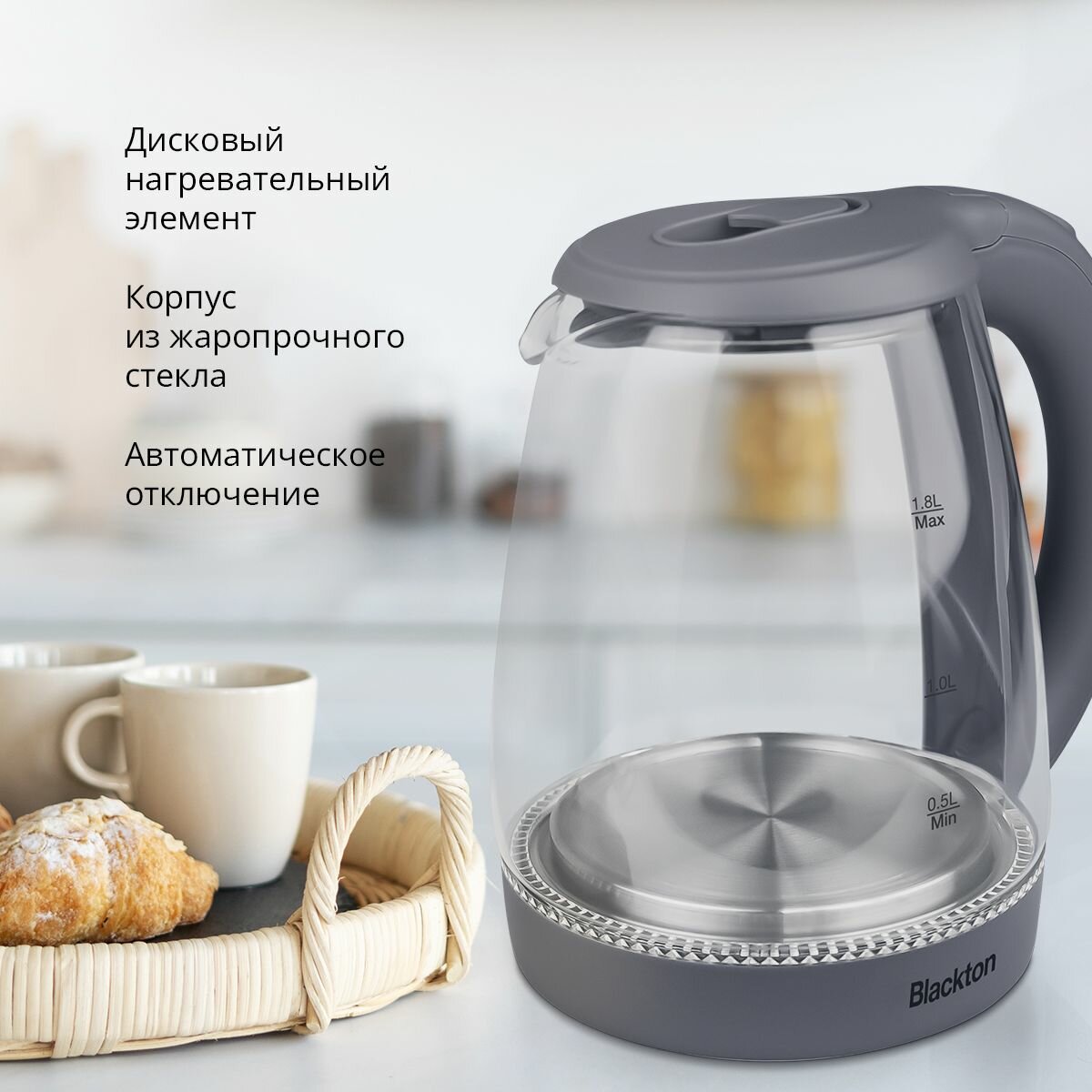 Электрочайники Чайник электрический Blackton Bt KT1800G Серый / Стеклянный / 1.8 л 1500 Вт