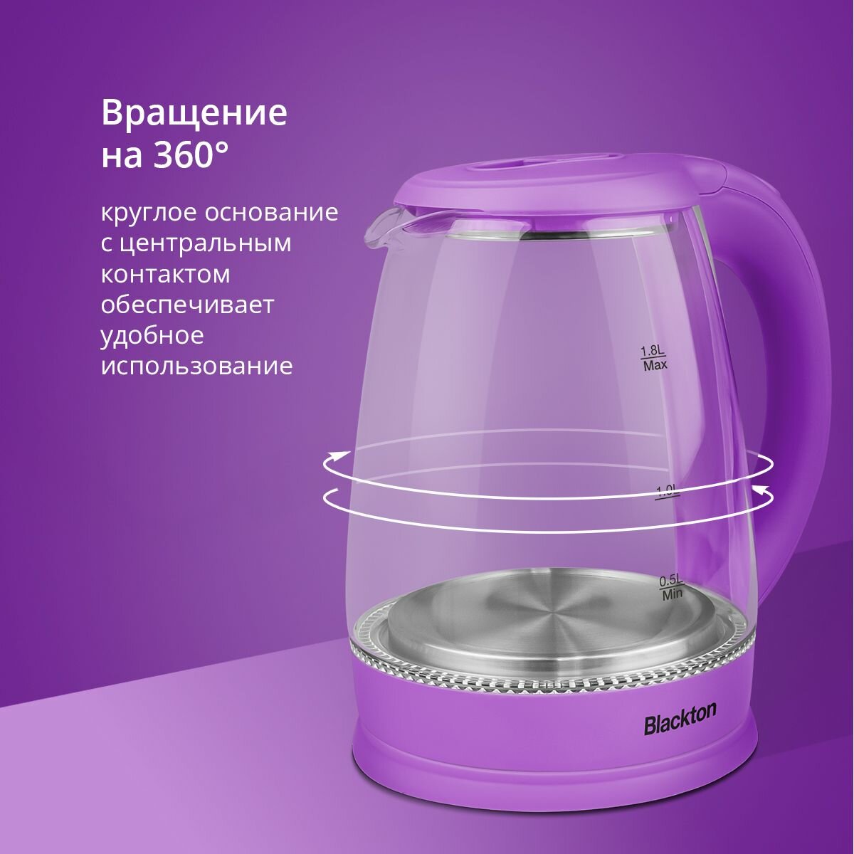 Электрочайники Чайник электрический Blackton Bt KT1800G Фиолетовый / Стеклянный / 1.8 л 1500 Вт