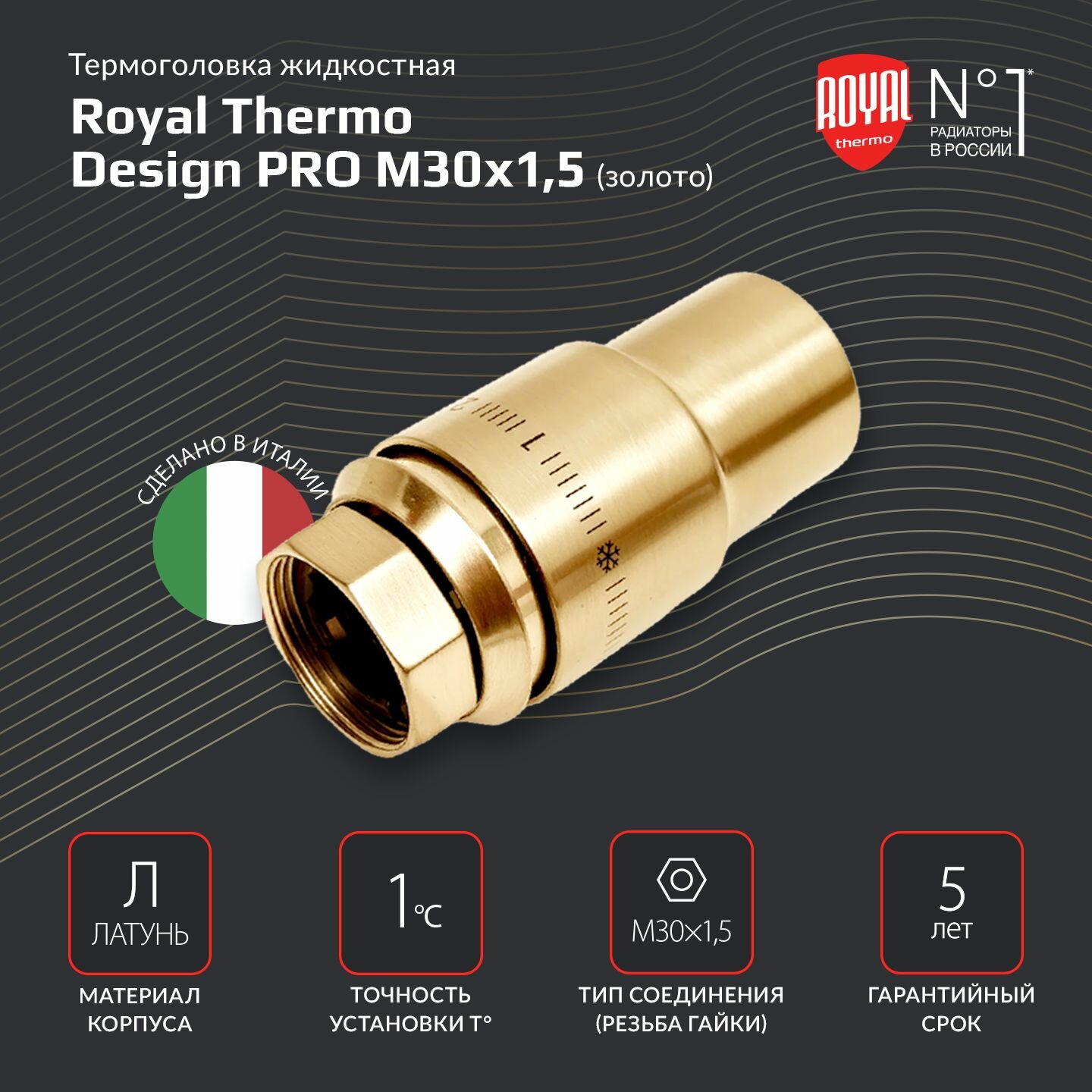 Терморегуляторы и автоматика Термоголовка жидкостная ROYAL THERMO Design PRO М30х1,5 (золото)