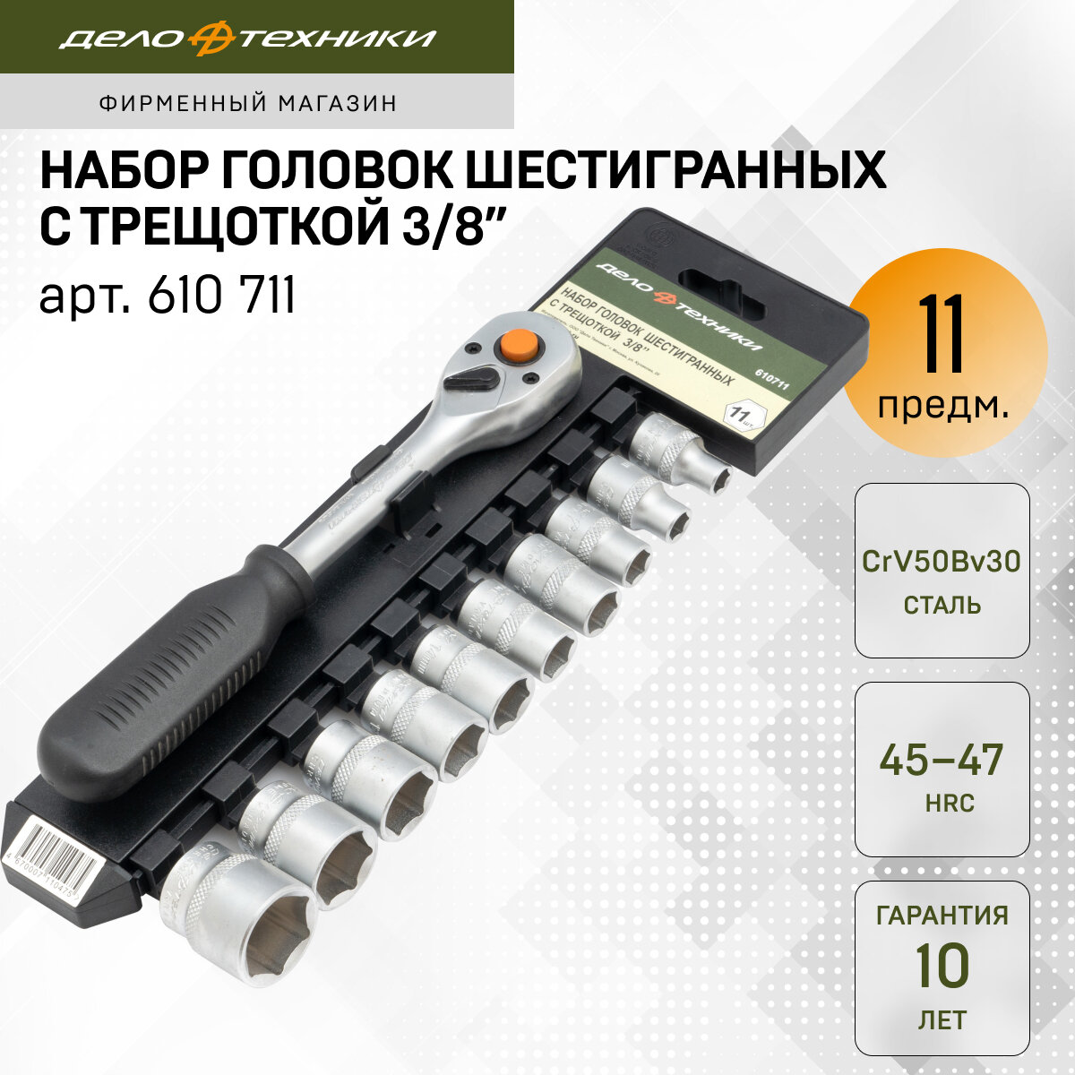 Набор головок шестигранных с трещоткой 3/8", 11 предм. Дело Техники 610711