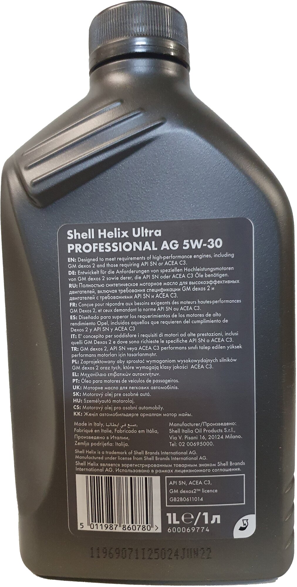 Масло моторное синтетическое Shell Shell Helix Ultra Professional AG 5W30 1 л 550046410 .