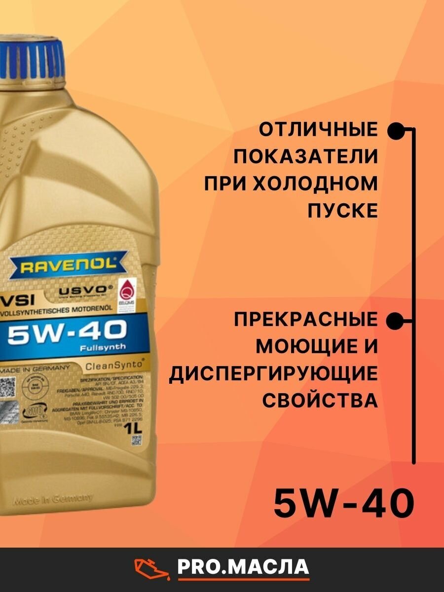 Моторное масло RAVENOL VSI 5W-40, синтетическое, 1 л