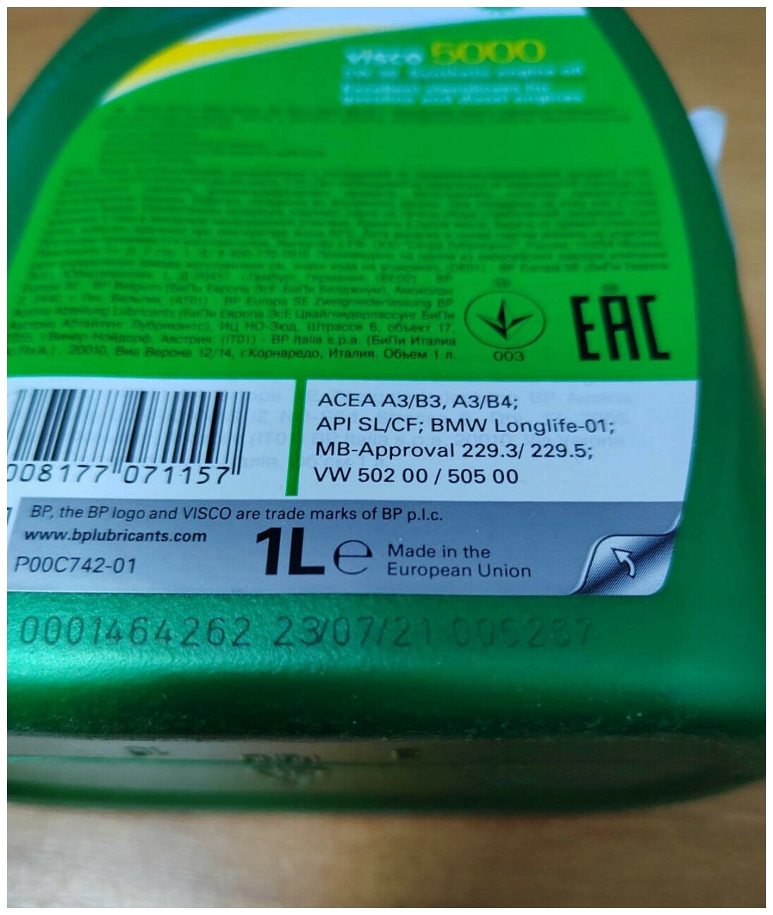 Масло моторное VISCO 5000 5W30 синтетика, 4литра BP 15807A