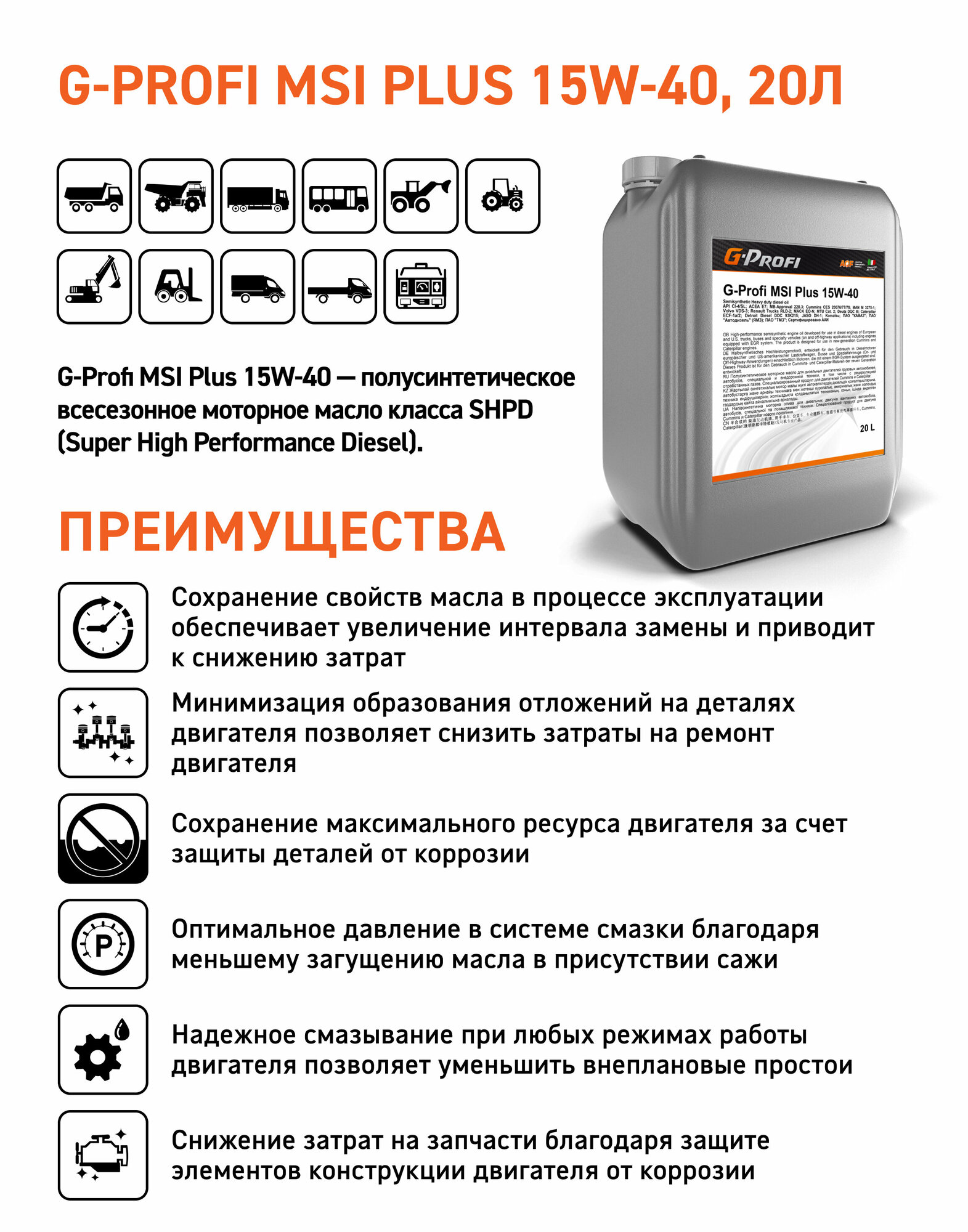 Моторное масло G-Profi MSI Plus 15W-40, 20 л