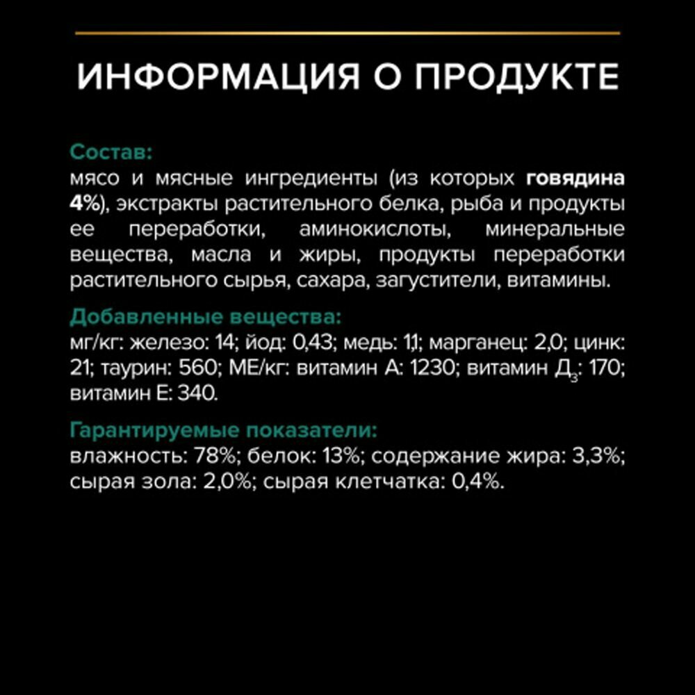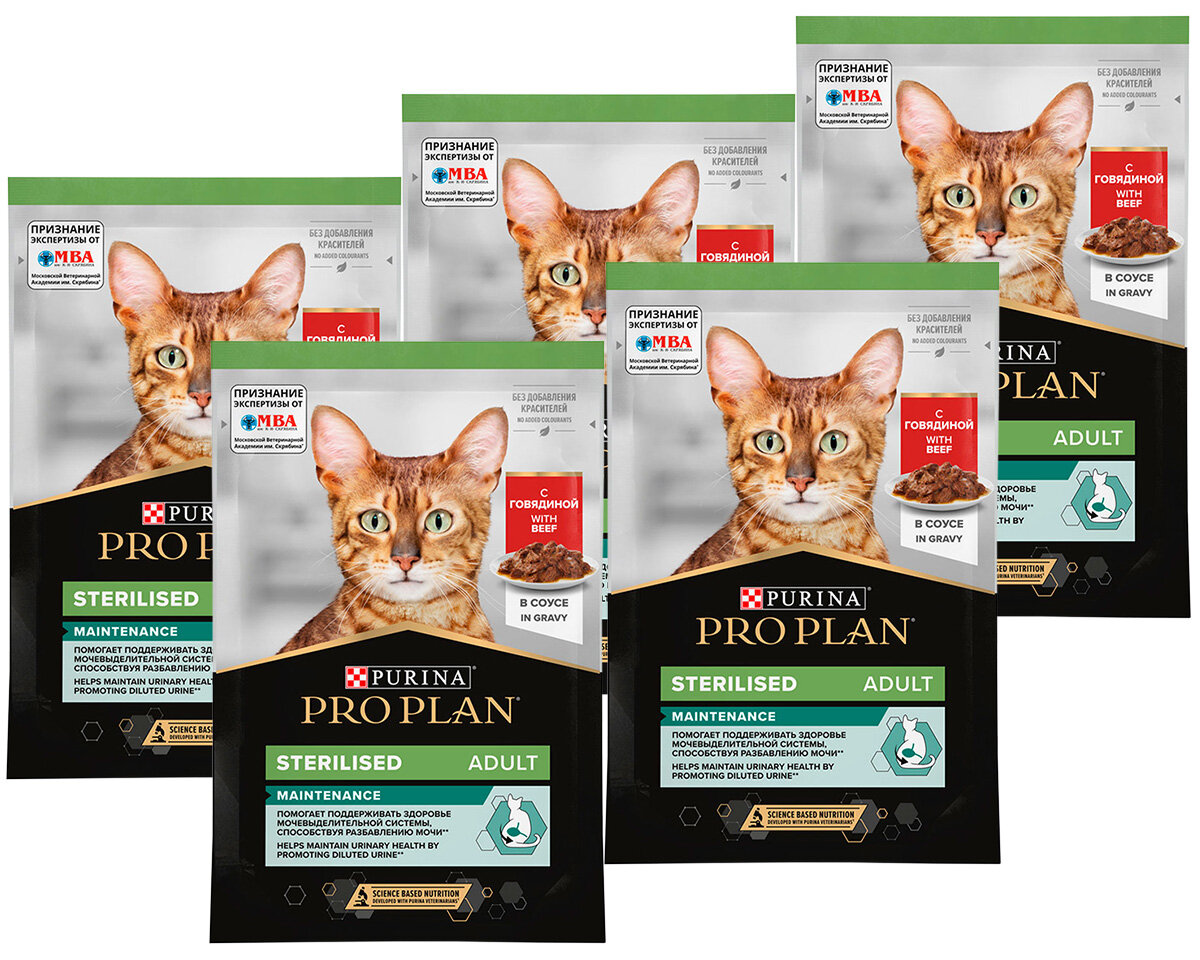 Корм для кошек PRO PLAN STERILISED MAINTENANCE для взрослых стерил кошек и кастр котов с говядиной в соус пауч 85гр 85 гр х 5 шт