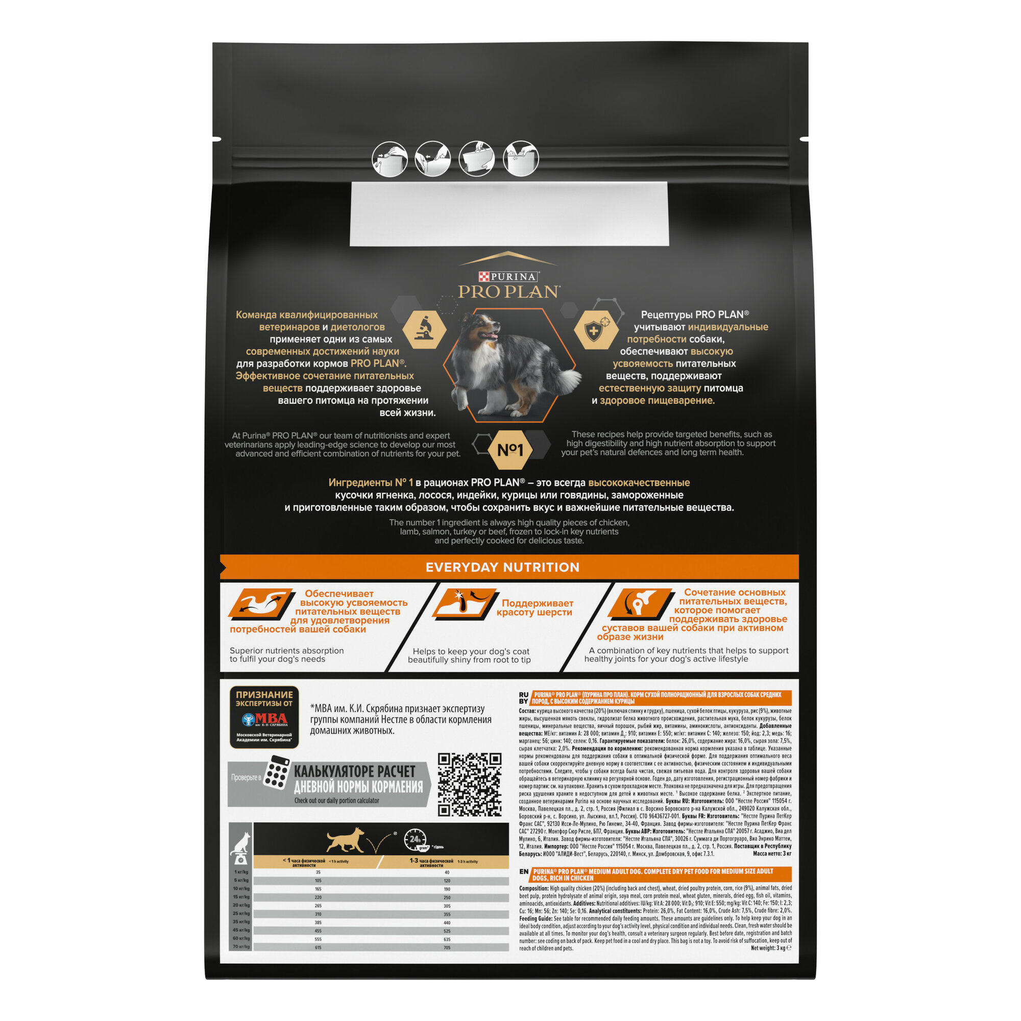 Сухой корм PRO PLAN® для взрослых собак средних пород, с высоким содержанием курицы, EVERYDAY NUTRITION,14 кг