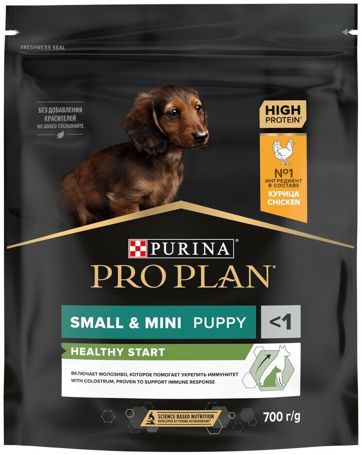 Корм для собак Сухой корм Pro Plan для щенков мелких и карликовых пород, с высоким содержанием курицы, Пакет, 700 г х 4шт