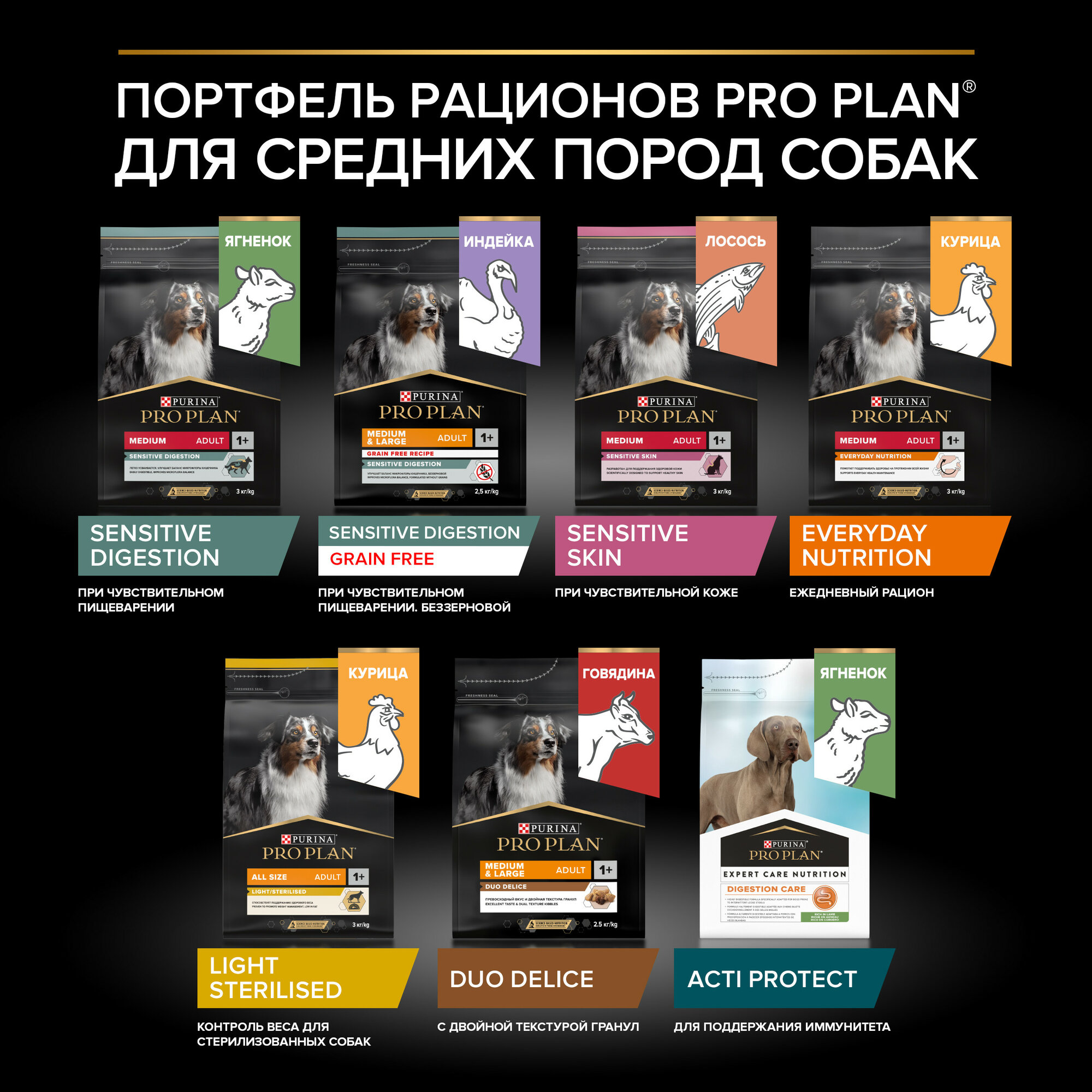 PRO PLAN ADULT DOG MEDIUM SENSITIVE SKIN для взрослых собак средних пород с чувствительной кожей с лососем и рисом (3 кг)