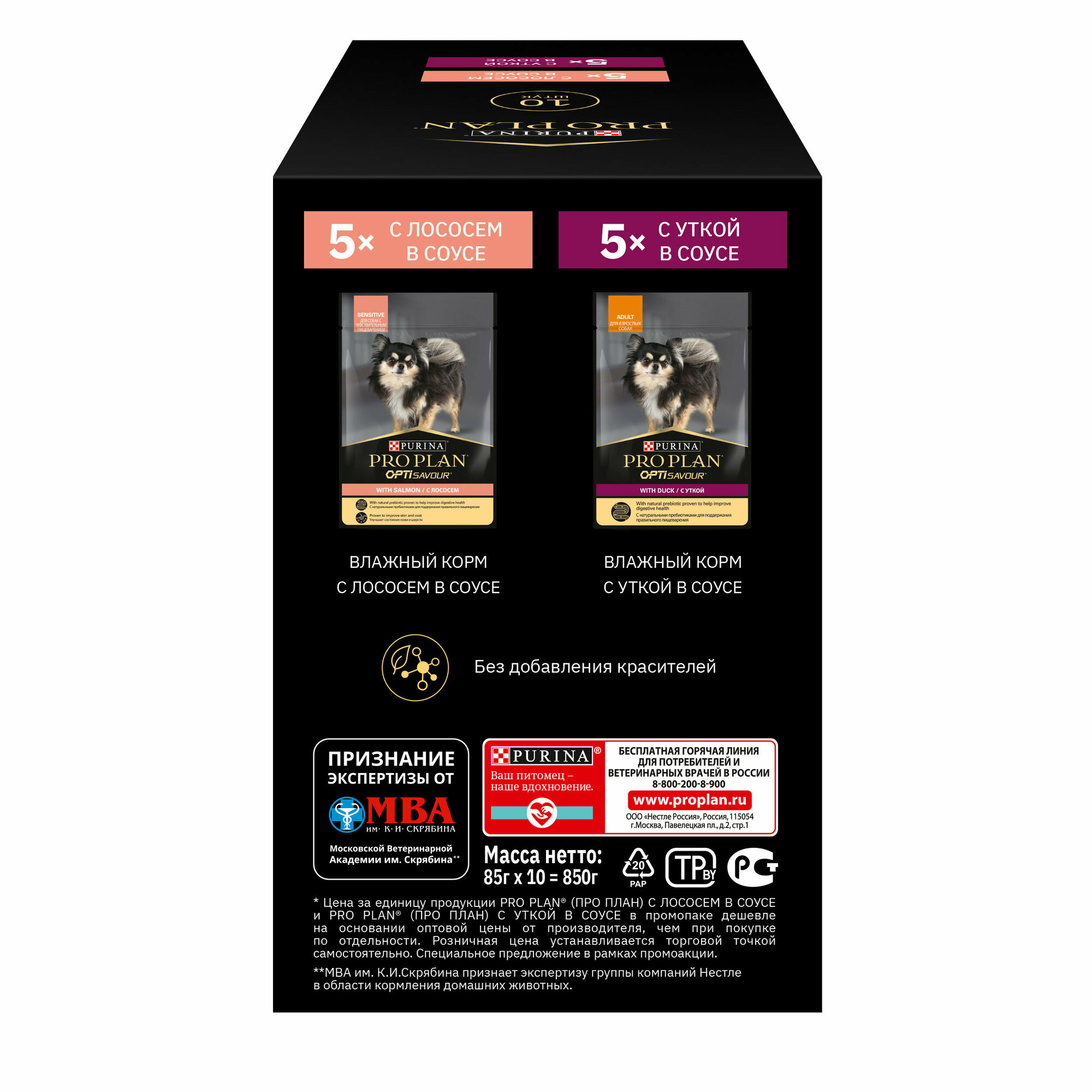 Корм для собак Pro Plan MIX набор паучей для взрослых собак мелких пород с лососем; с уткой - 85 г х 10 шт
