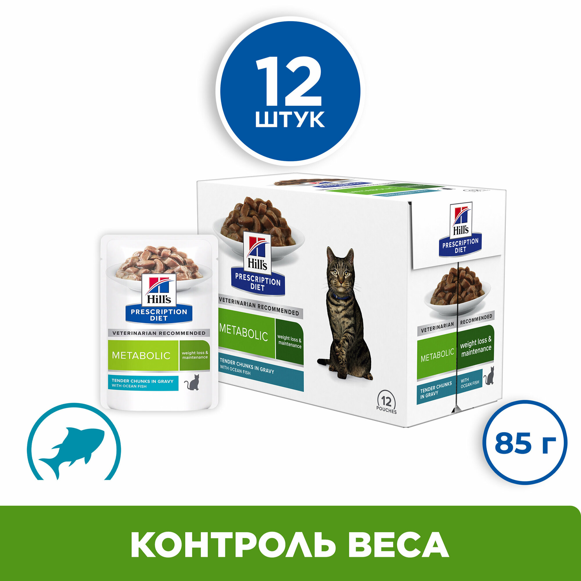 Корм для кошек Влажный диетический корм (пауч) Hill's Prescription Diet Metabolic для кошек, снижение и контроль веса, с океанической рыбой 12шт*85г