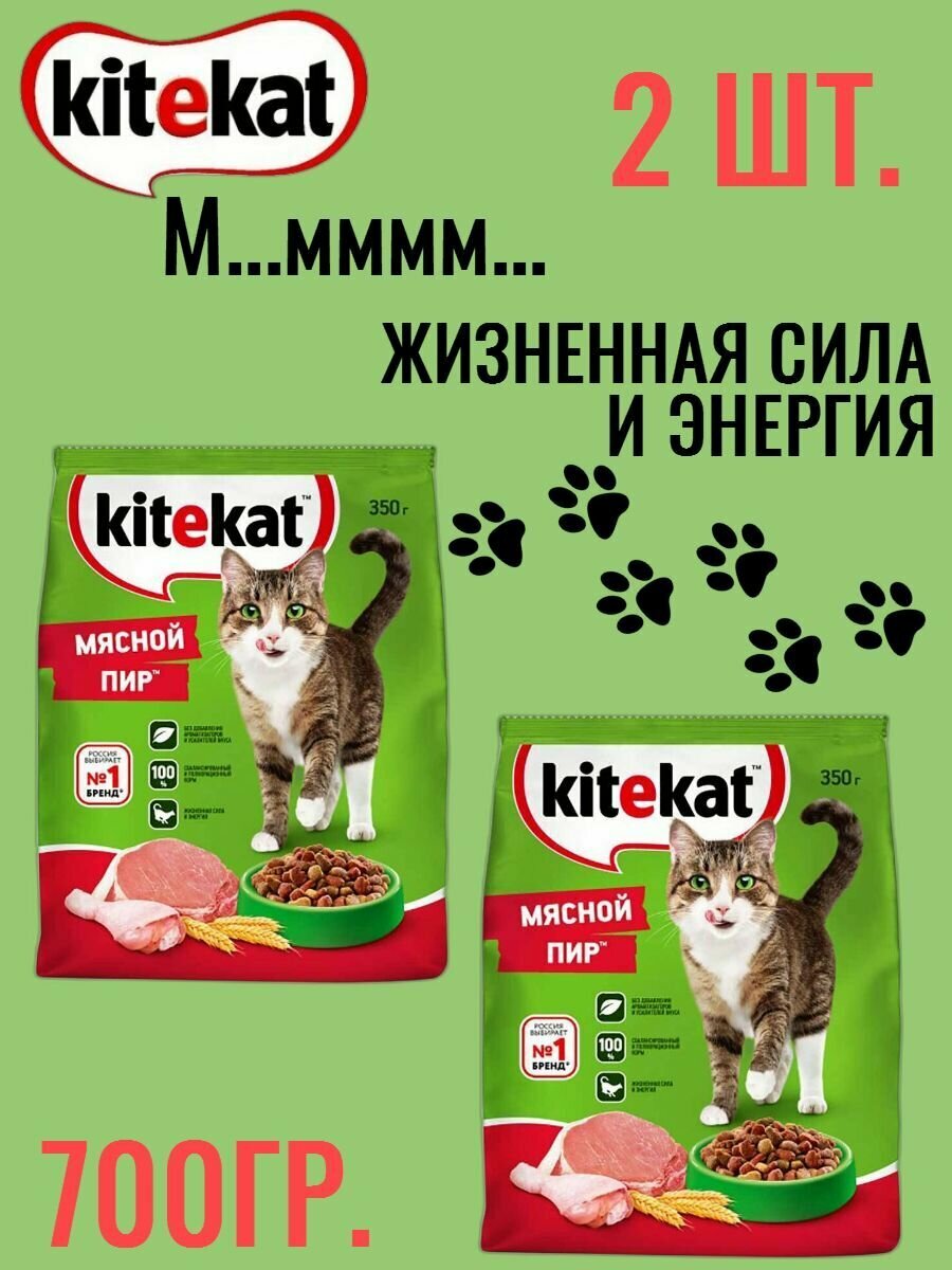 Корм для кошек Kitekat, Сухой корм для кошек Мясной пир ,700 гр сухой корм китикет для взрослых кошек, 2 шт по 350 гр
