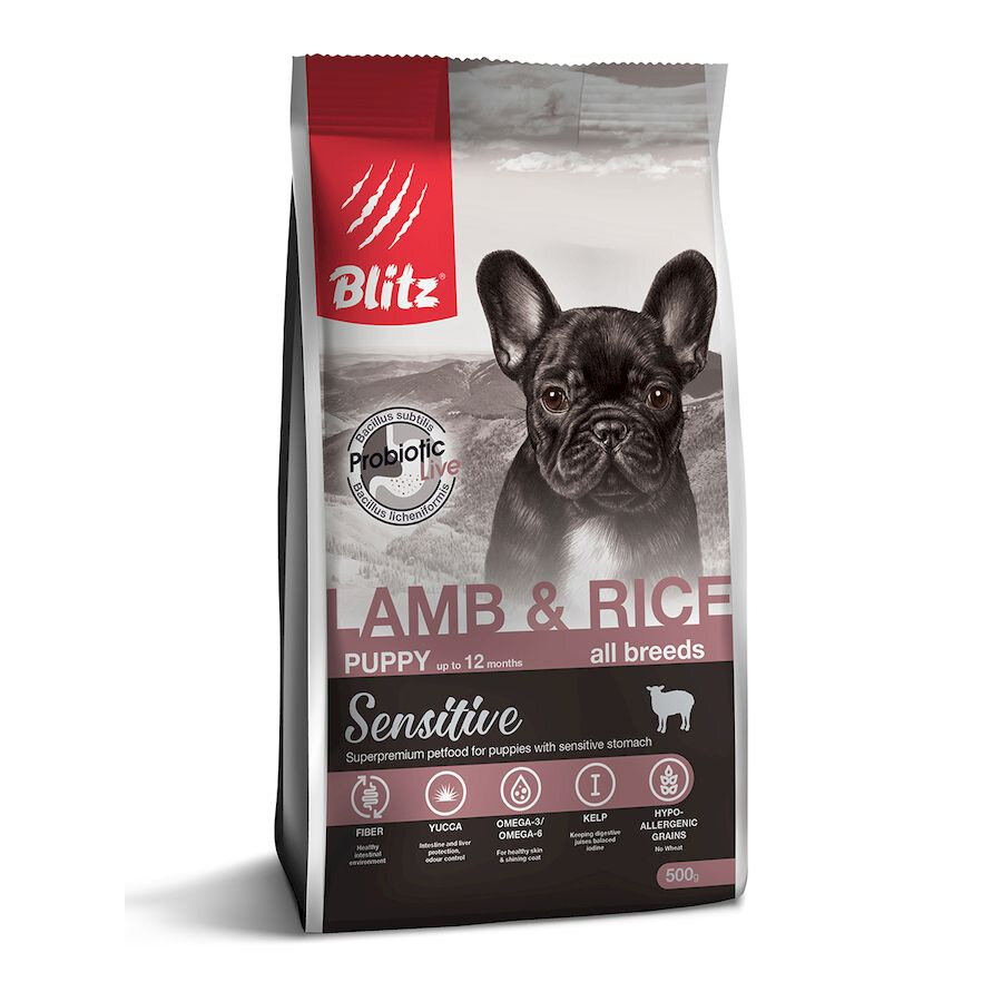BLITZ SENSITIVE PUPPY ALL BREEDS LAMB & RICE для щенков всех пород с ягненком и рисом (0,5 кг)