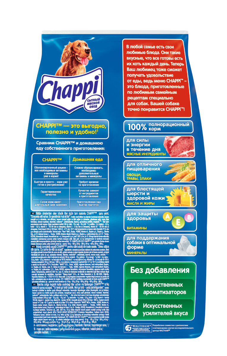 CHAPPI говядина ПО-домашнему для взрослых собак всех пород (15 кг)