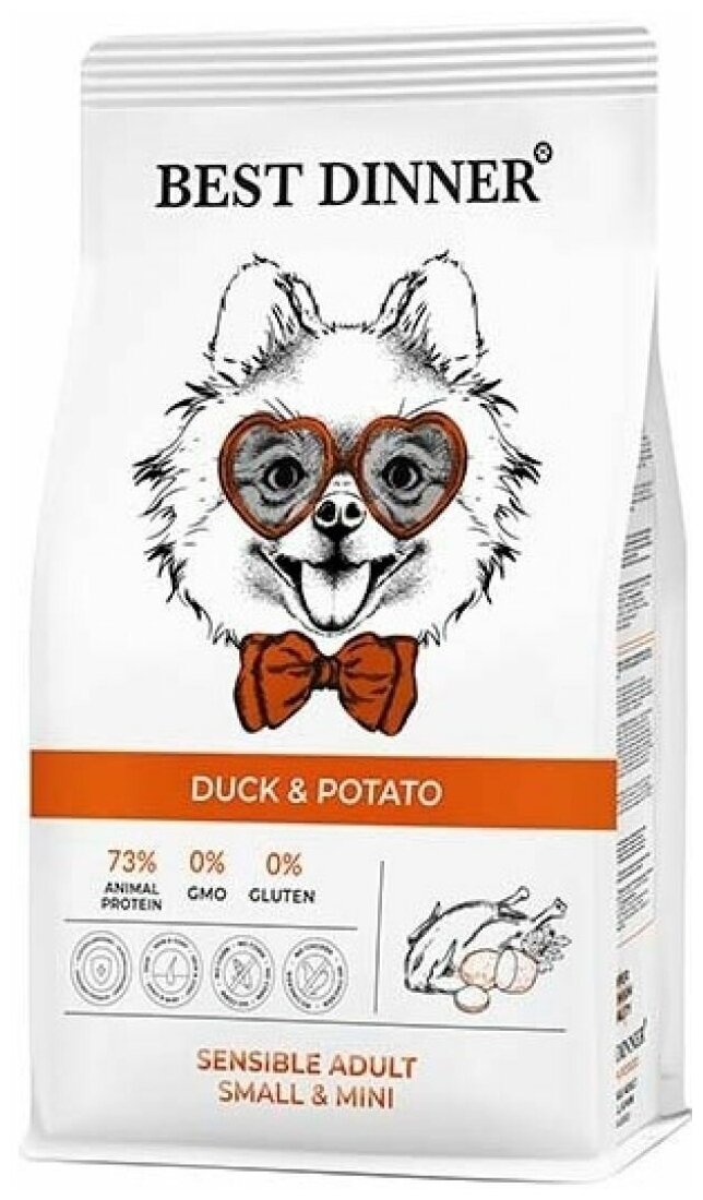 Корм для собак Best Dinner Adult Sensible Mini Duck & Potato сухой корм для собак мелких пород склонных к аллергии и проблемам с пищеварением с уткой и картофелем - 1,5 кг