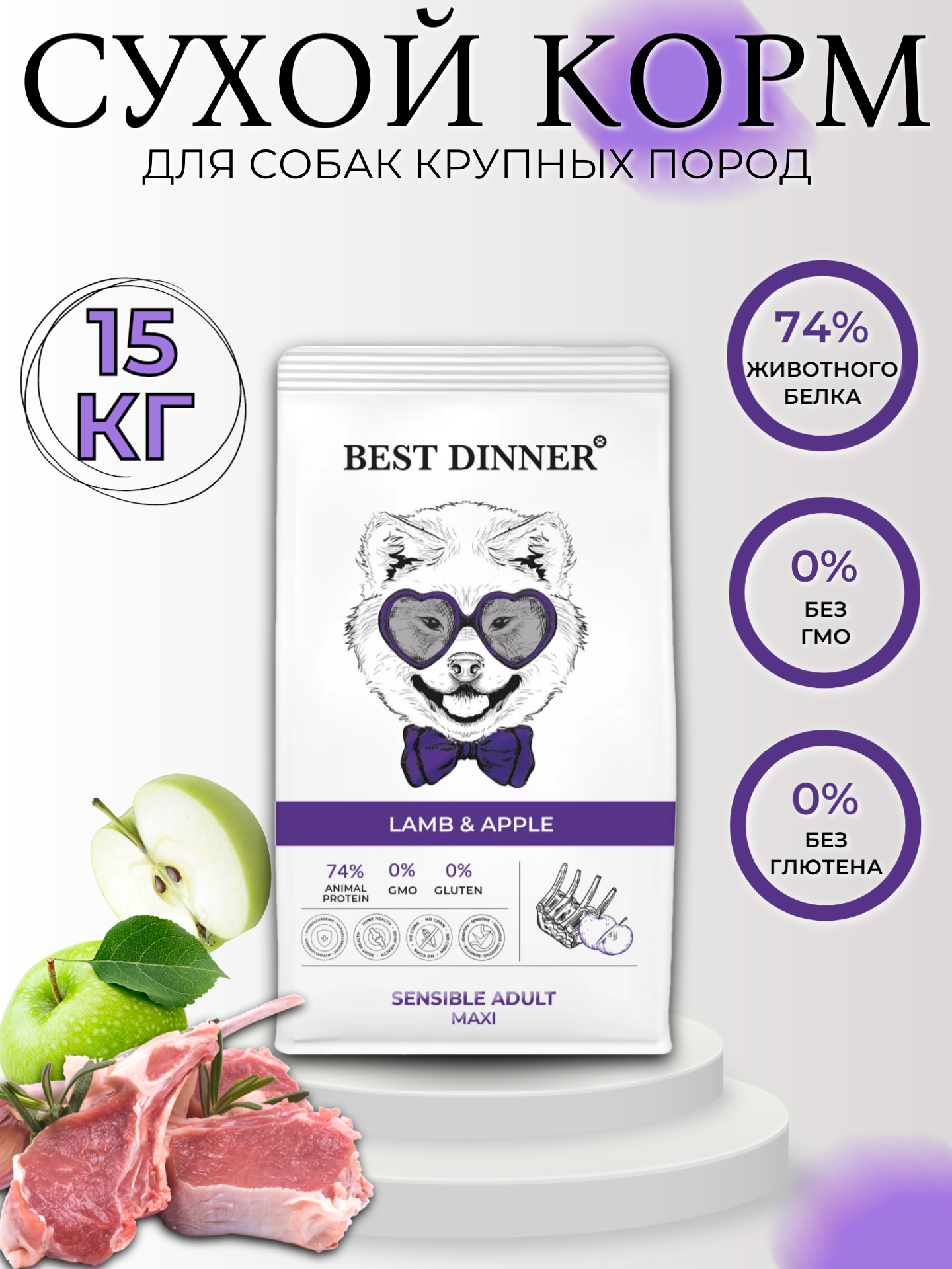 Сухой корм Best Dinner 3кг Sensible Maxi Lamb&Apple для собак крупных пород с ягнёнком и яблоком