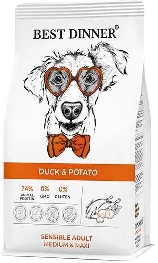 Best Dinner Dog Adult Sensible Medium/Maxi 12кг х 2шт утка с картофелем сухой для собак крупных и средних пород