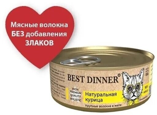 Корм для кошек Best Dinner High Premium влажный корм для взрослых кошек с натуральной курицей, в консервах - 100 г х 12 шт